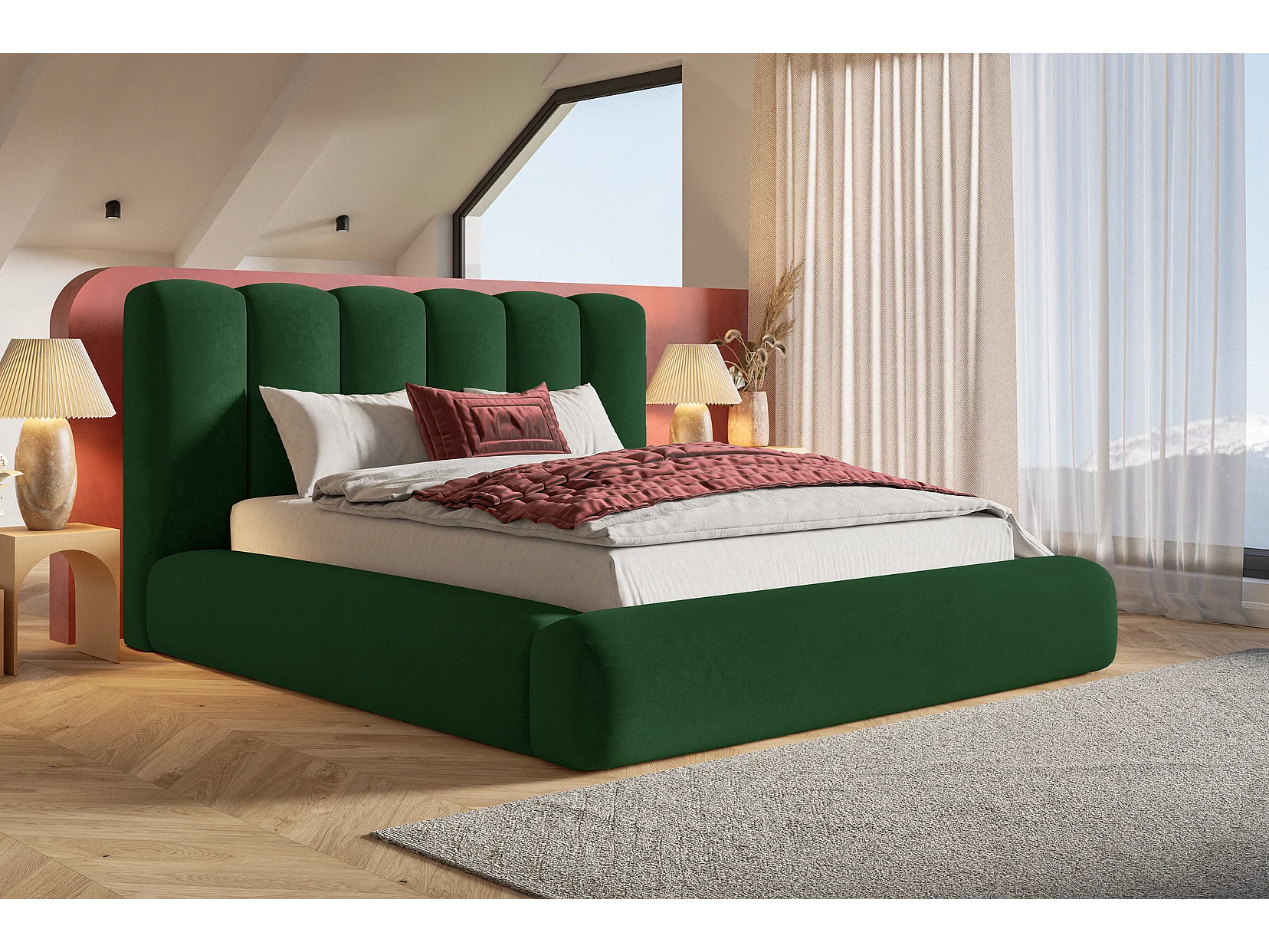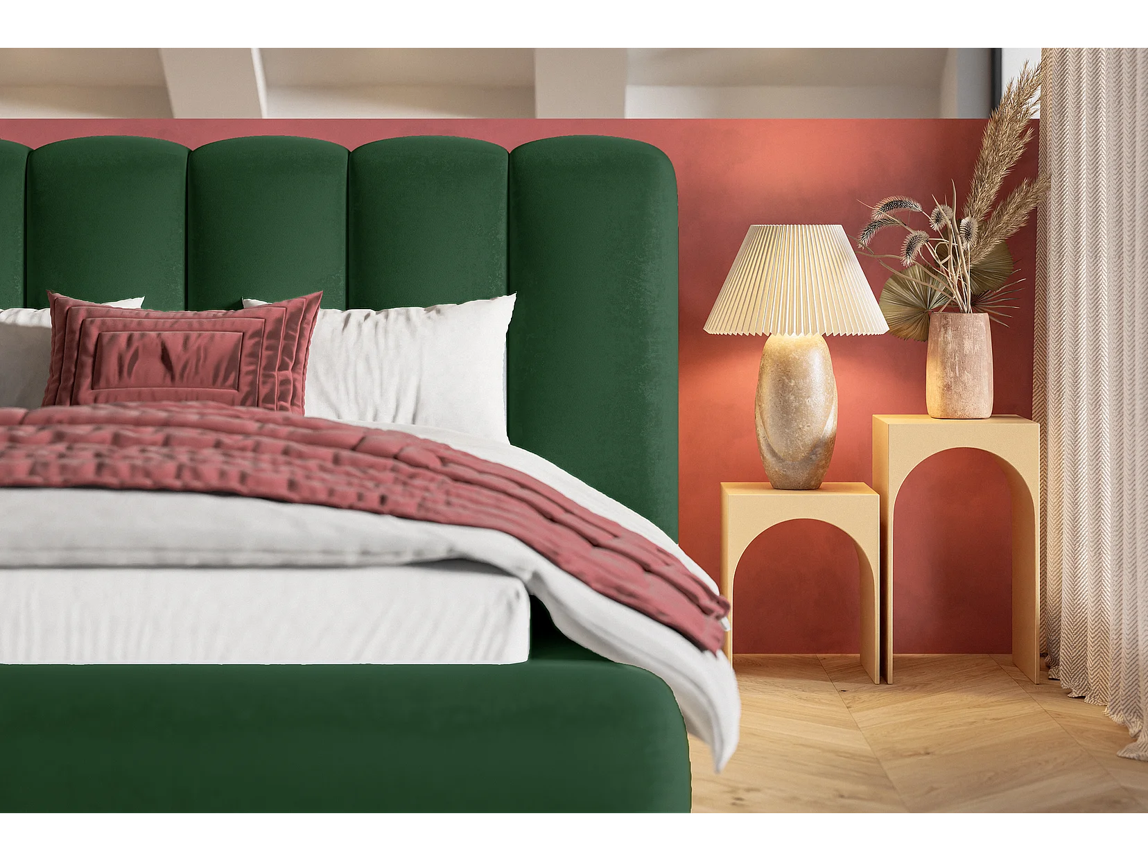 Gestoffeerd bed 140x200 Lumaro met opbergruimte - lattenbodem, Groen (Amor Velvet 4311)
