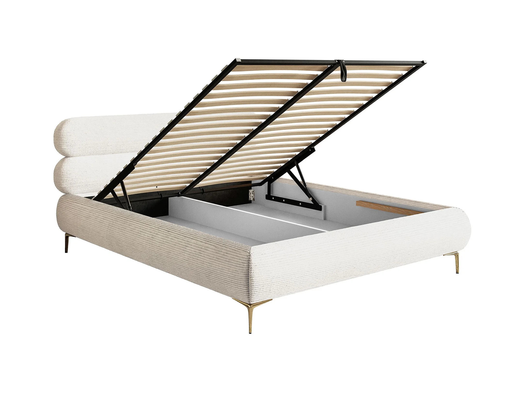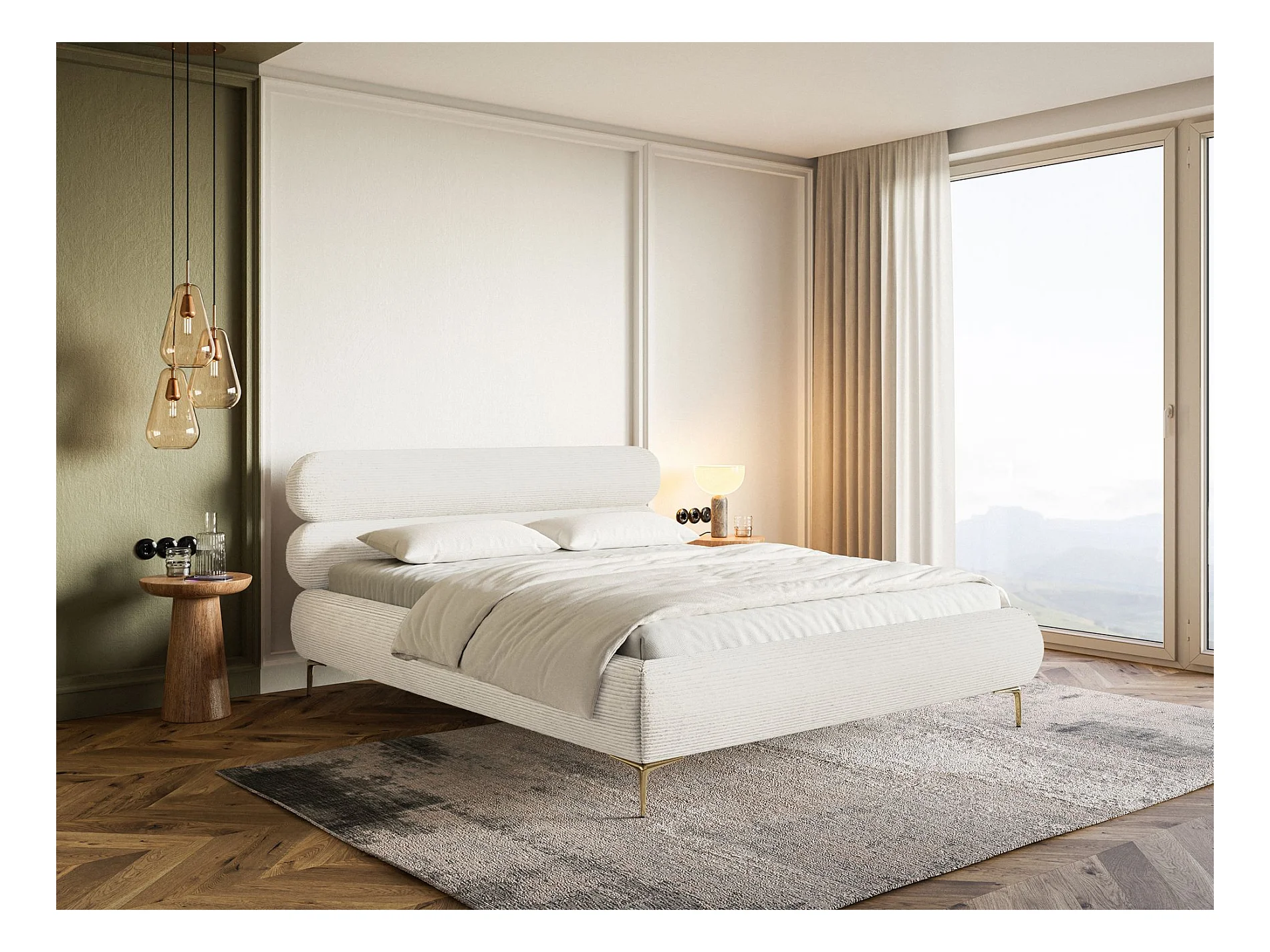 Gestoffeerd bed 140×200 met opbergruimte – ribfluweel en goudkleurige poten – crème – ROULE CORD