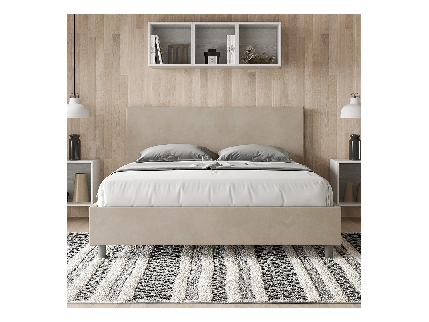 Adele bed met 160x190 gestoffeerde basis in zandkleurige microvezel