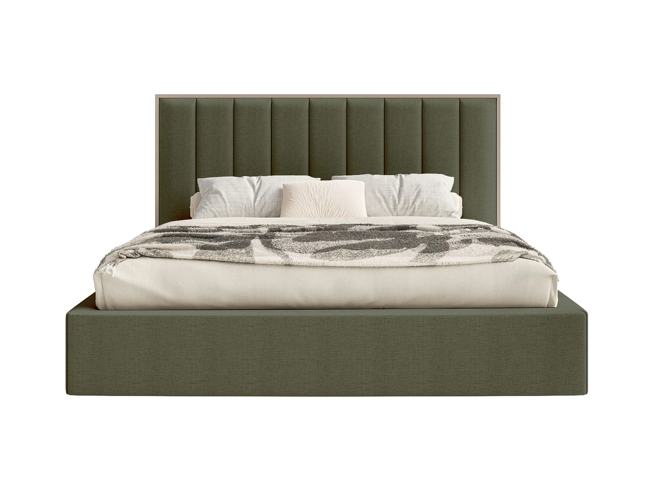 Gestoffeerd bed 160×200 met opbergruimte – ribfluweel en goudkleurige poten – olijfgroen – ROULE CORD