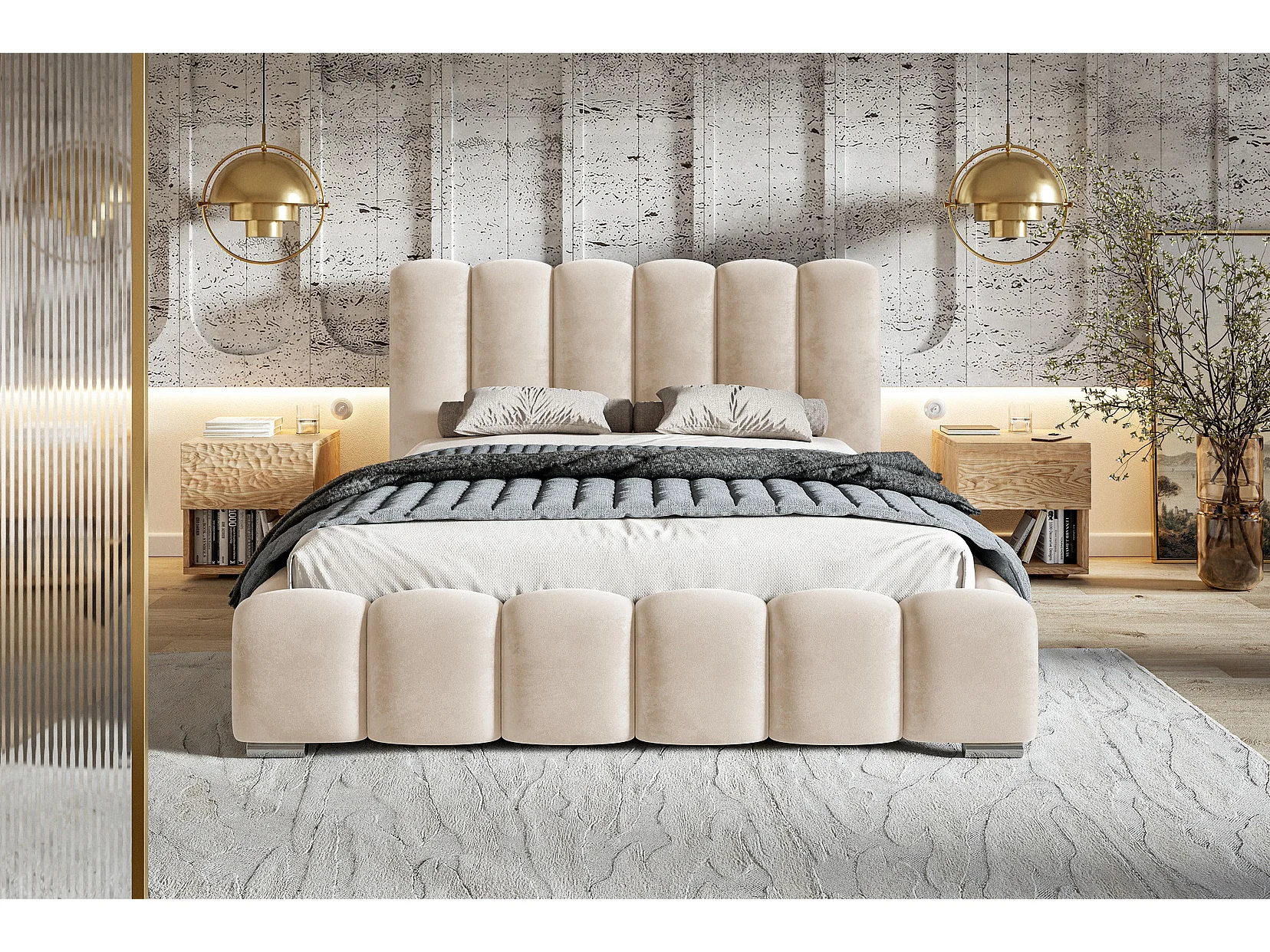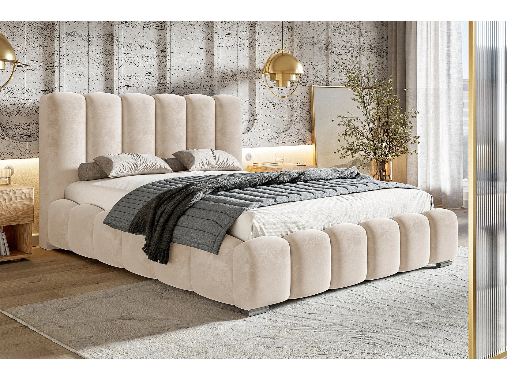 Gestoffeerd bed 160x200 cm met opbergruimte Pearl - metalen lattenbodem, fluwelen Beige (Amor Velvet 4304)