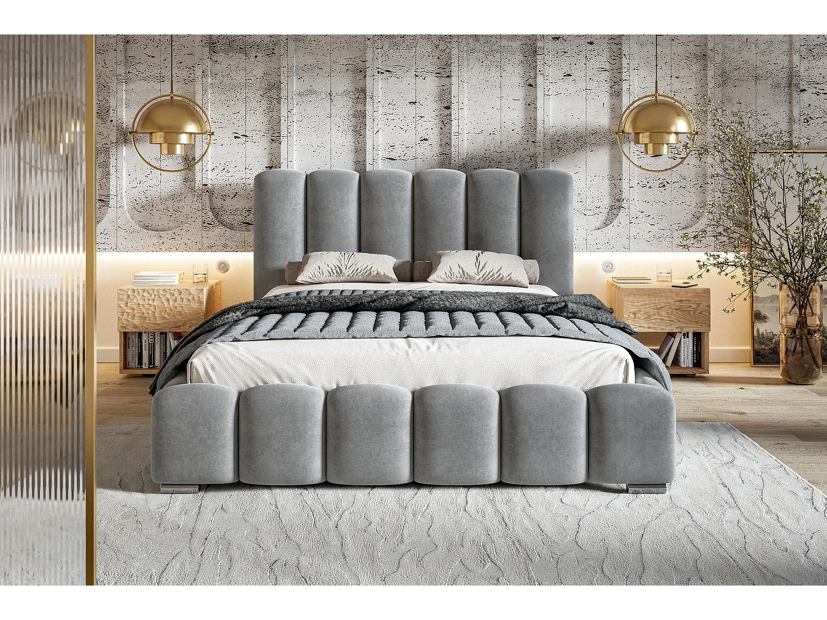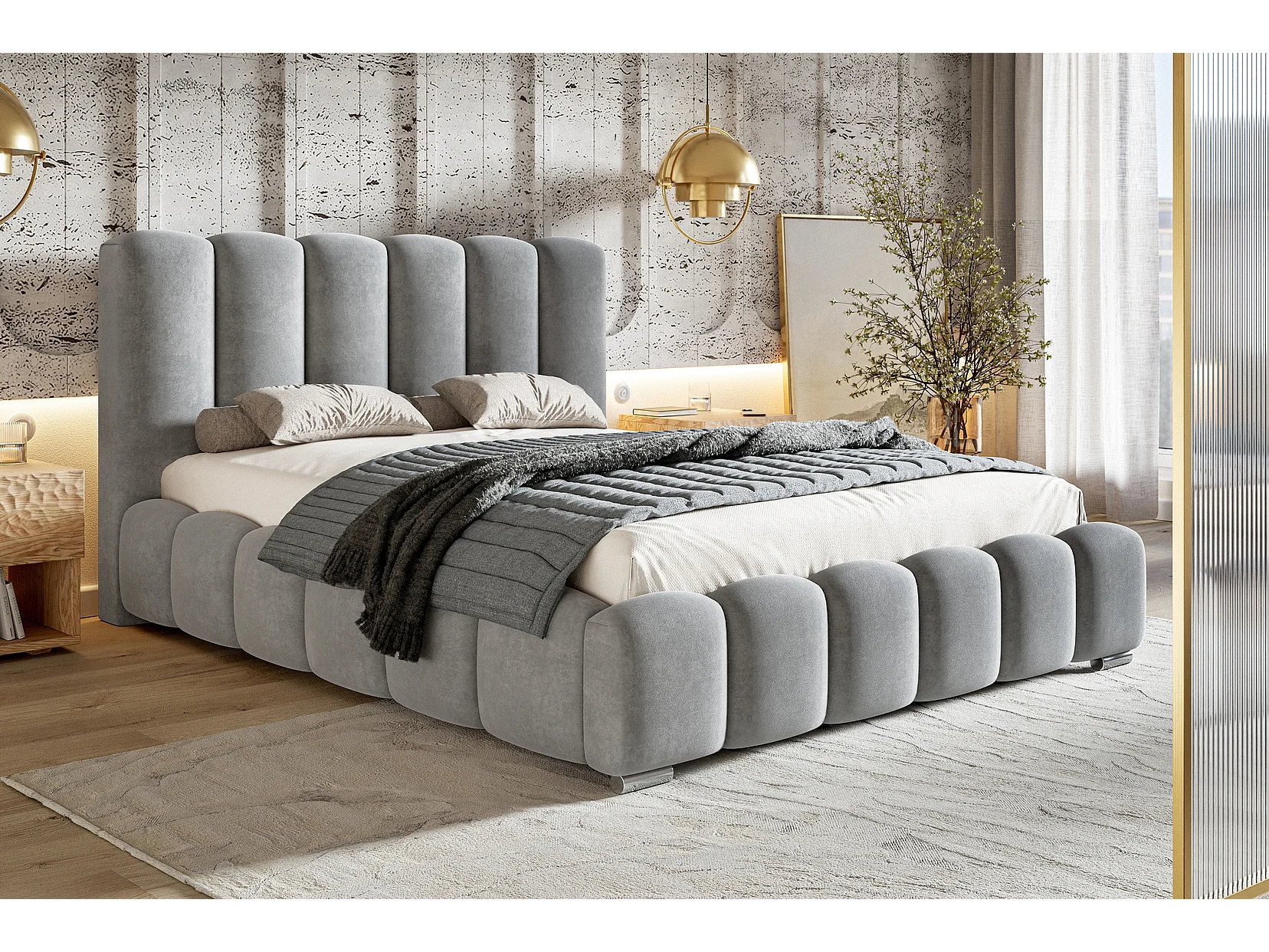 Gestoffeerd bed 160x200 cm met opbergruimte Pearl - metalen lattenbodem, fluwelen Grijs (Amor Velvet 4318)