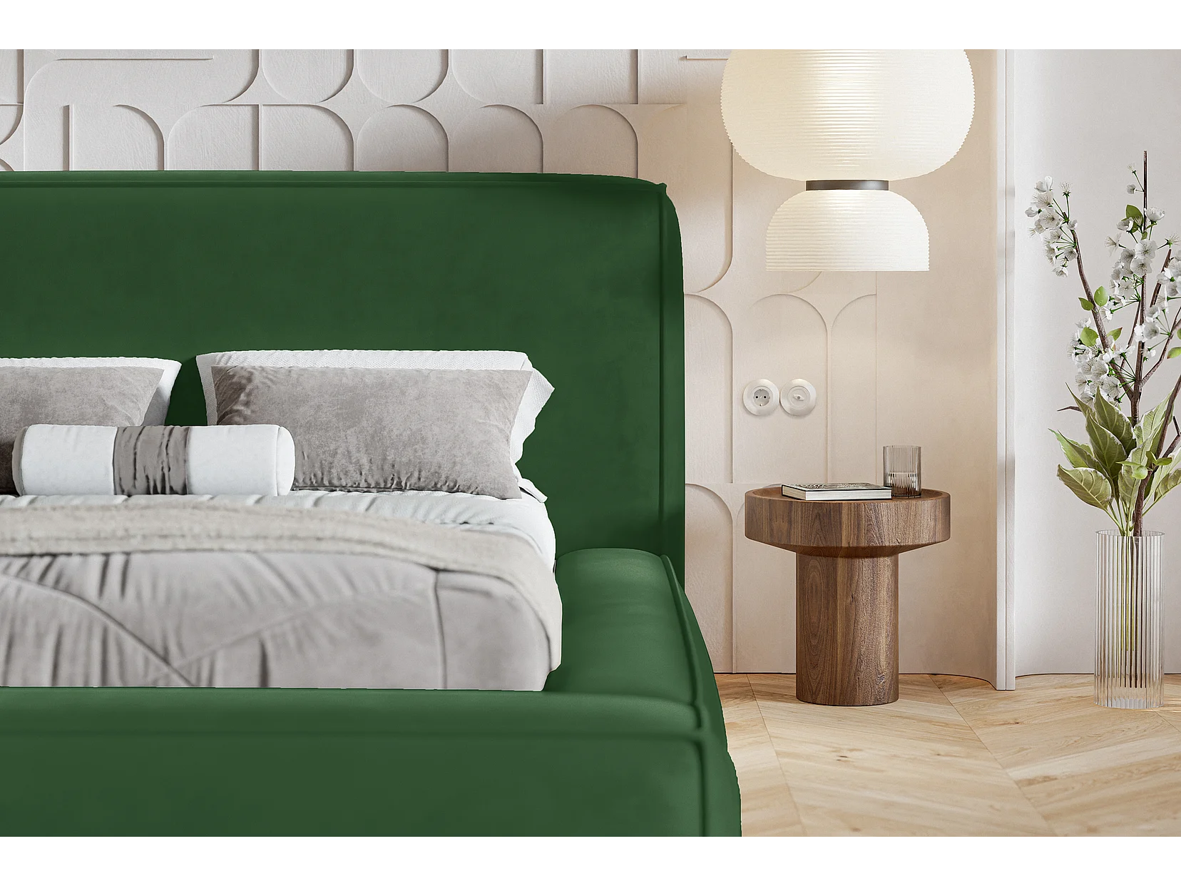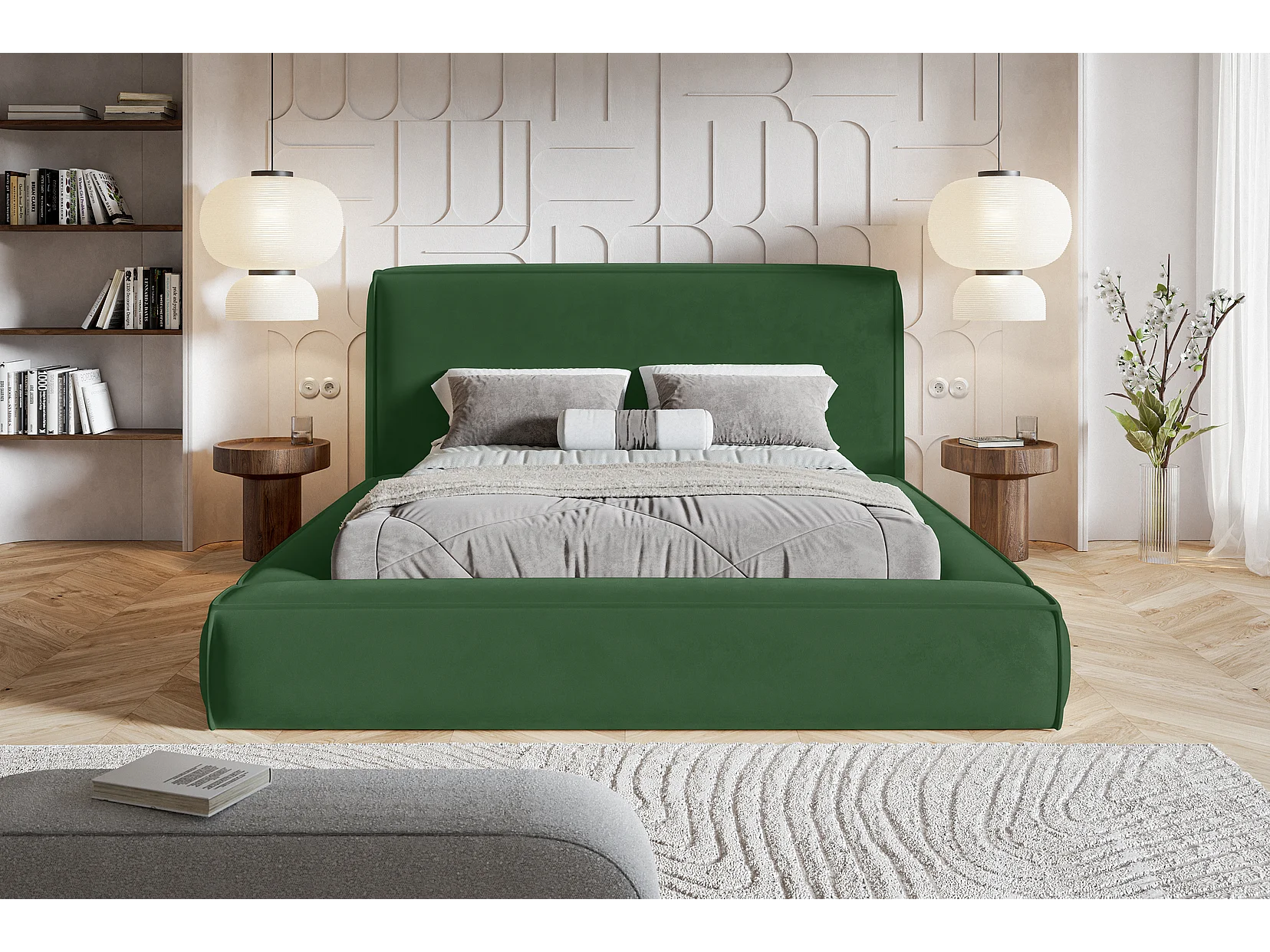 Gestoffeerd bed 160x200 Karano - fluweel, bed met opbergruimte, lattenbodem, Groen (Amor Velvet 4311)