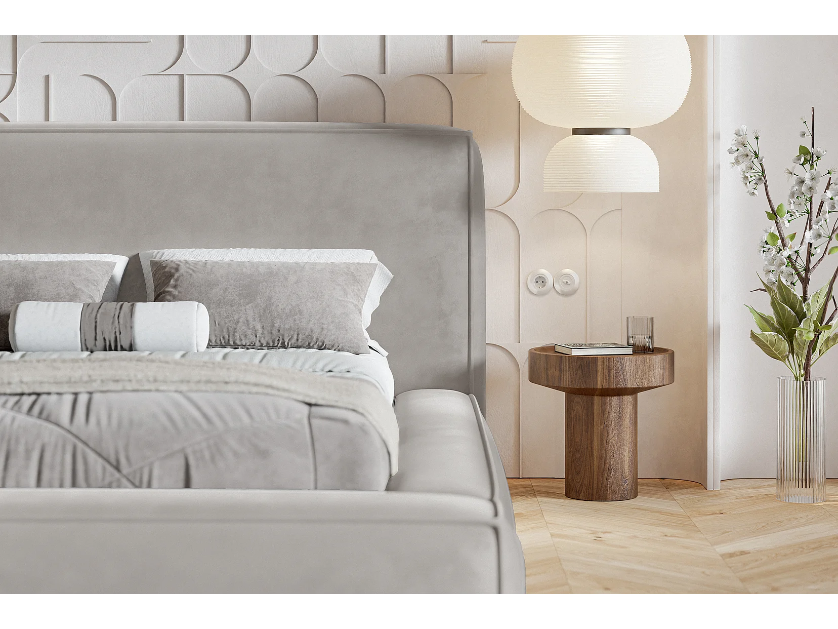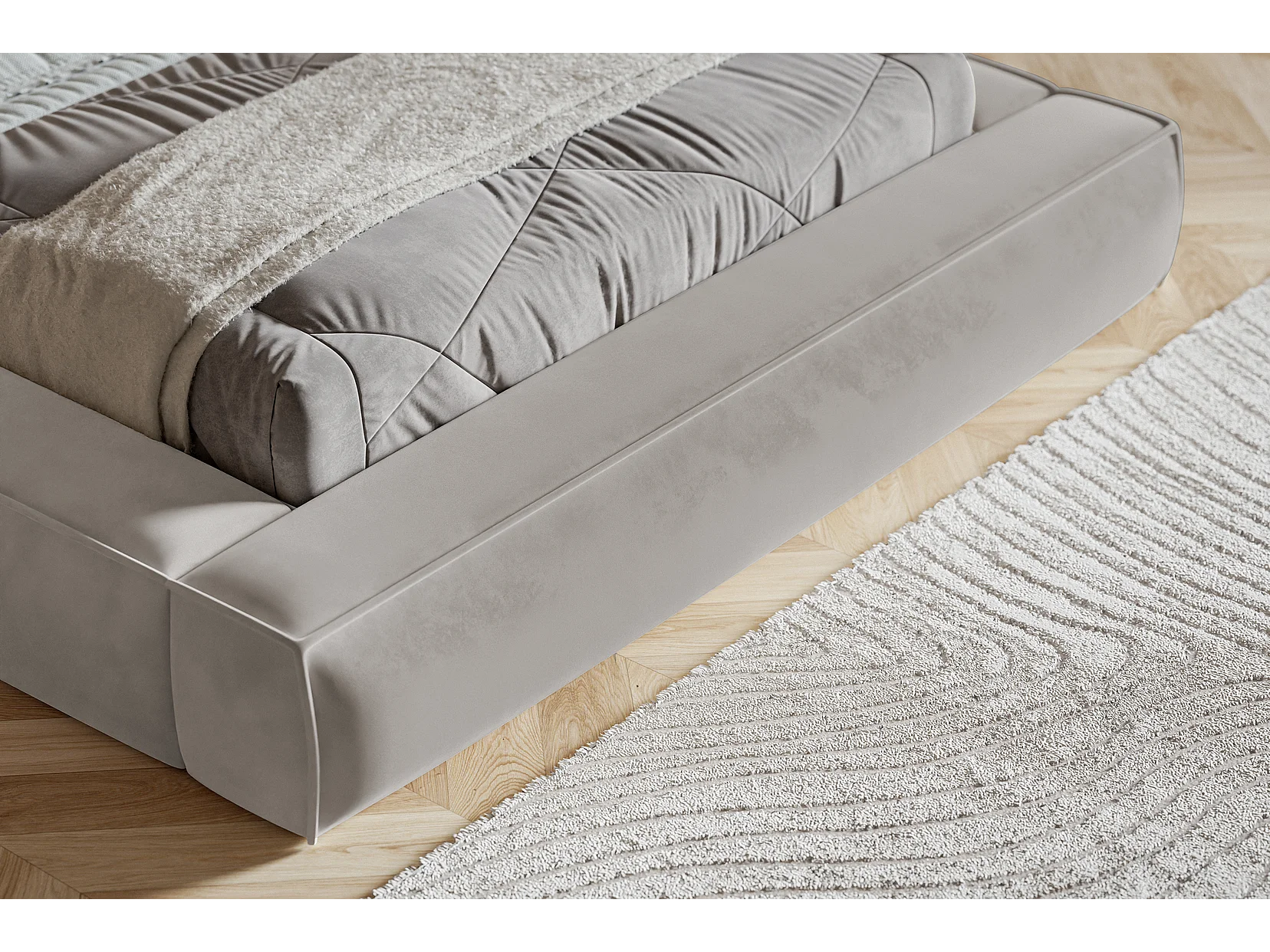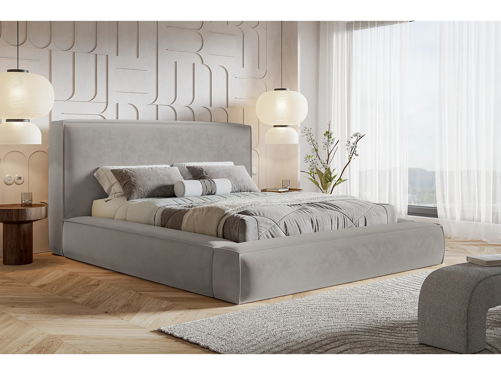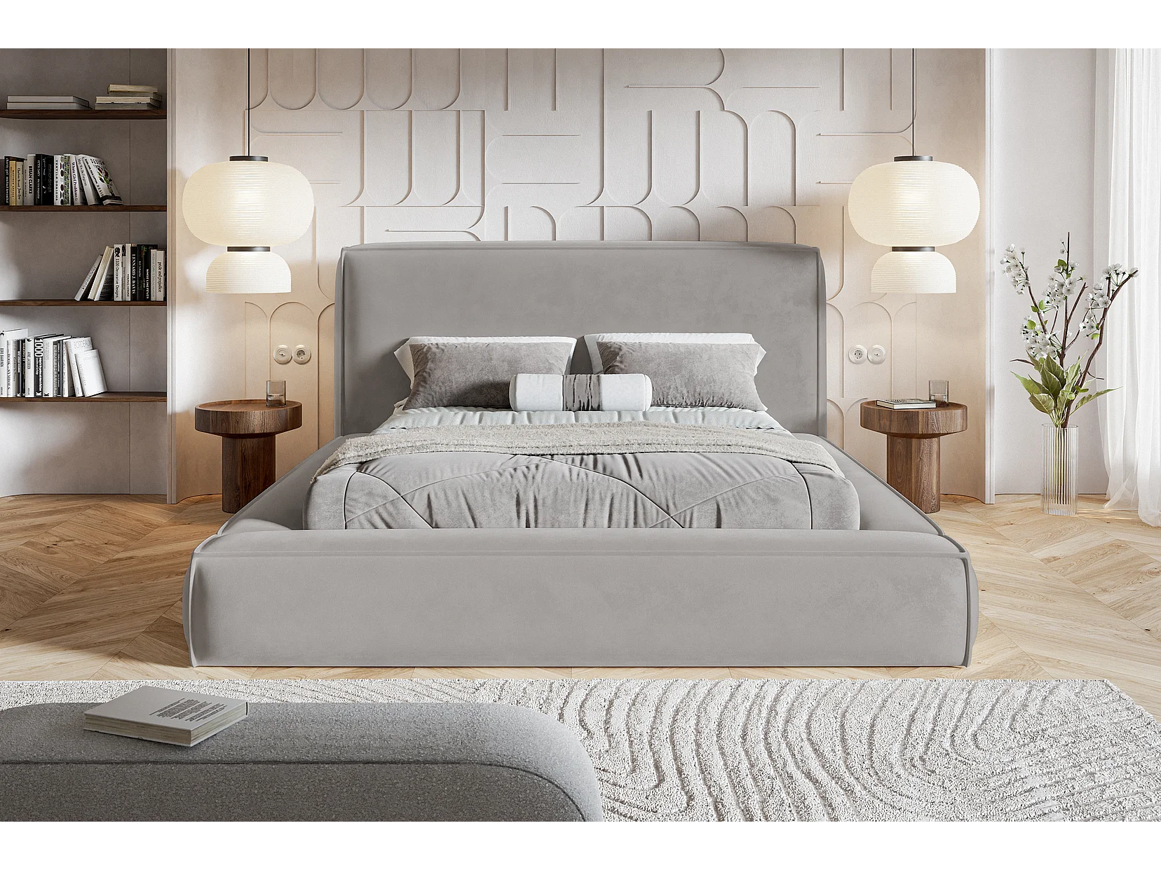 Gestoffeerd bed 160x200 Karano - fluweel, bed met opbergruimte, lattenbodem, Lichtgrijs (Amor Velvet 4318)