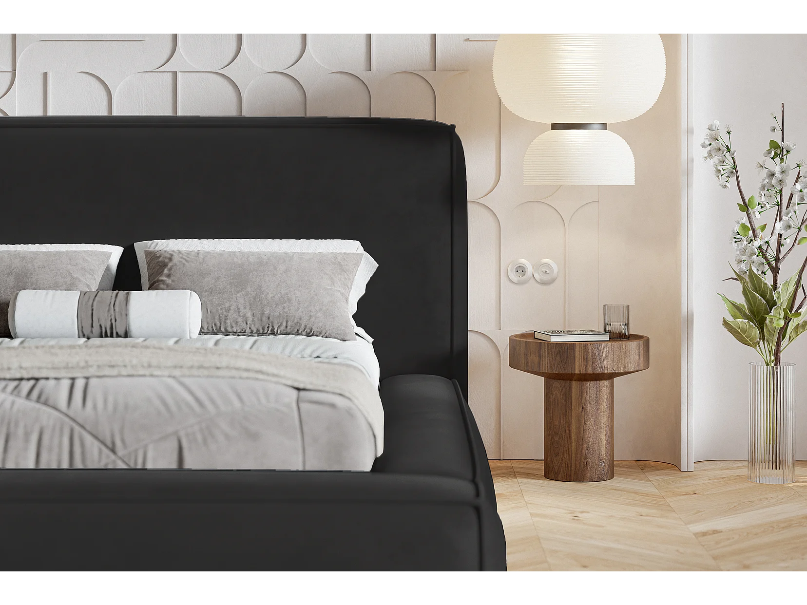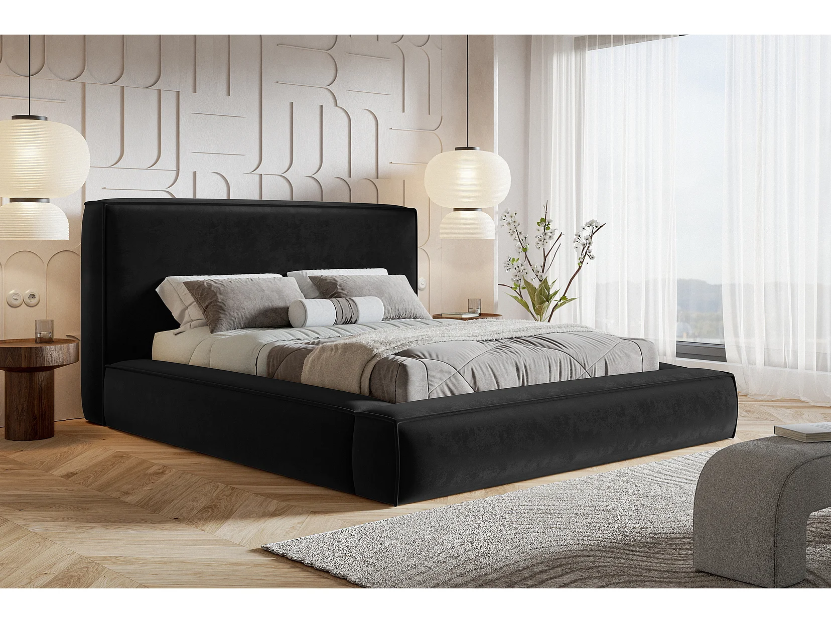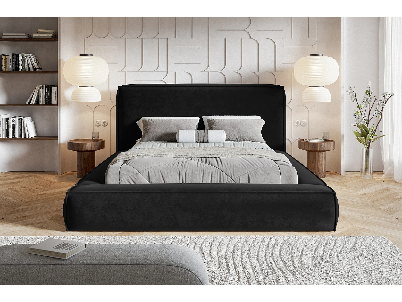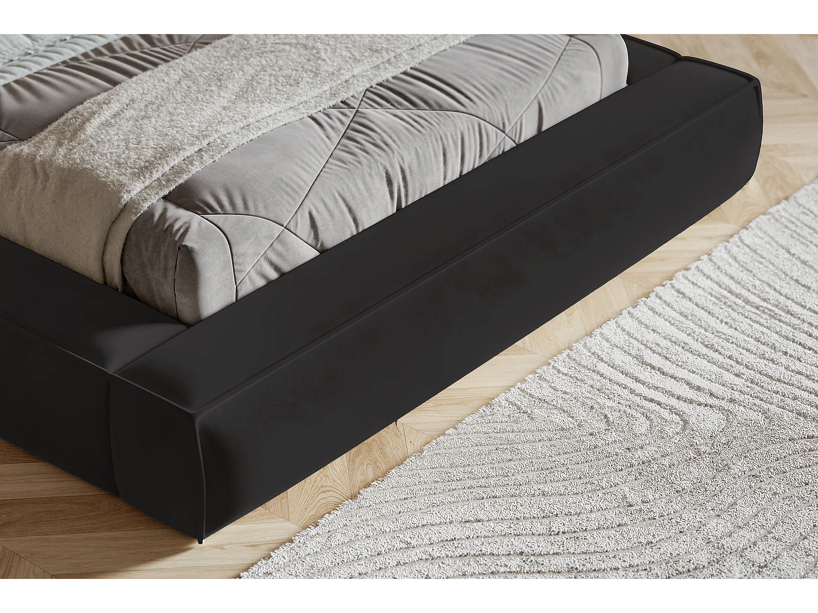 Gestoffeerd bed 160x200 Karano - fluweel, bed met opbergruimte, lattenbodem, Zwart (Amor Velvet 4322)