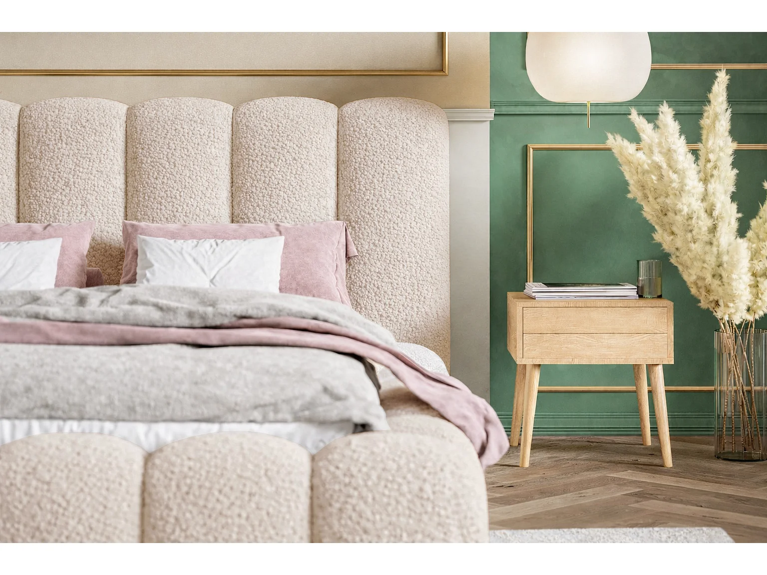 Gestoffeerd bed 160x200 Madeno - lattenbodem, opbergruimte - bouclé, Beige (Catch Me 2)