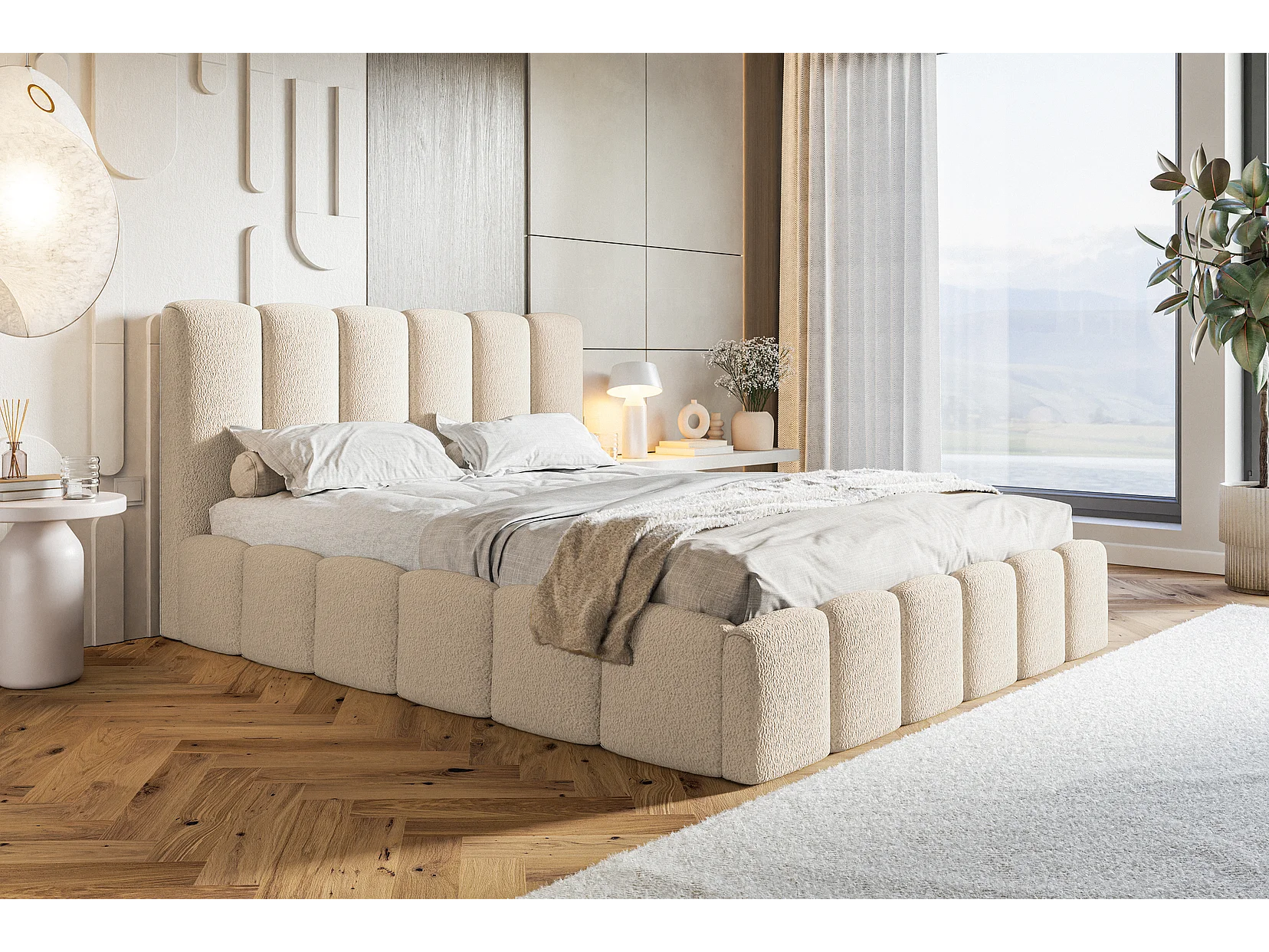 Gestoffeerd bed 160x200 Palermo met metalen lattenbodem - opbergruimte, Bouclé Beige (Anthology 3)
