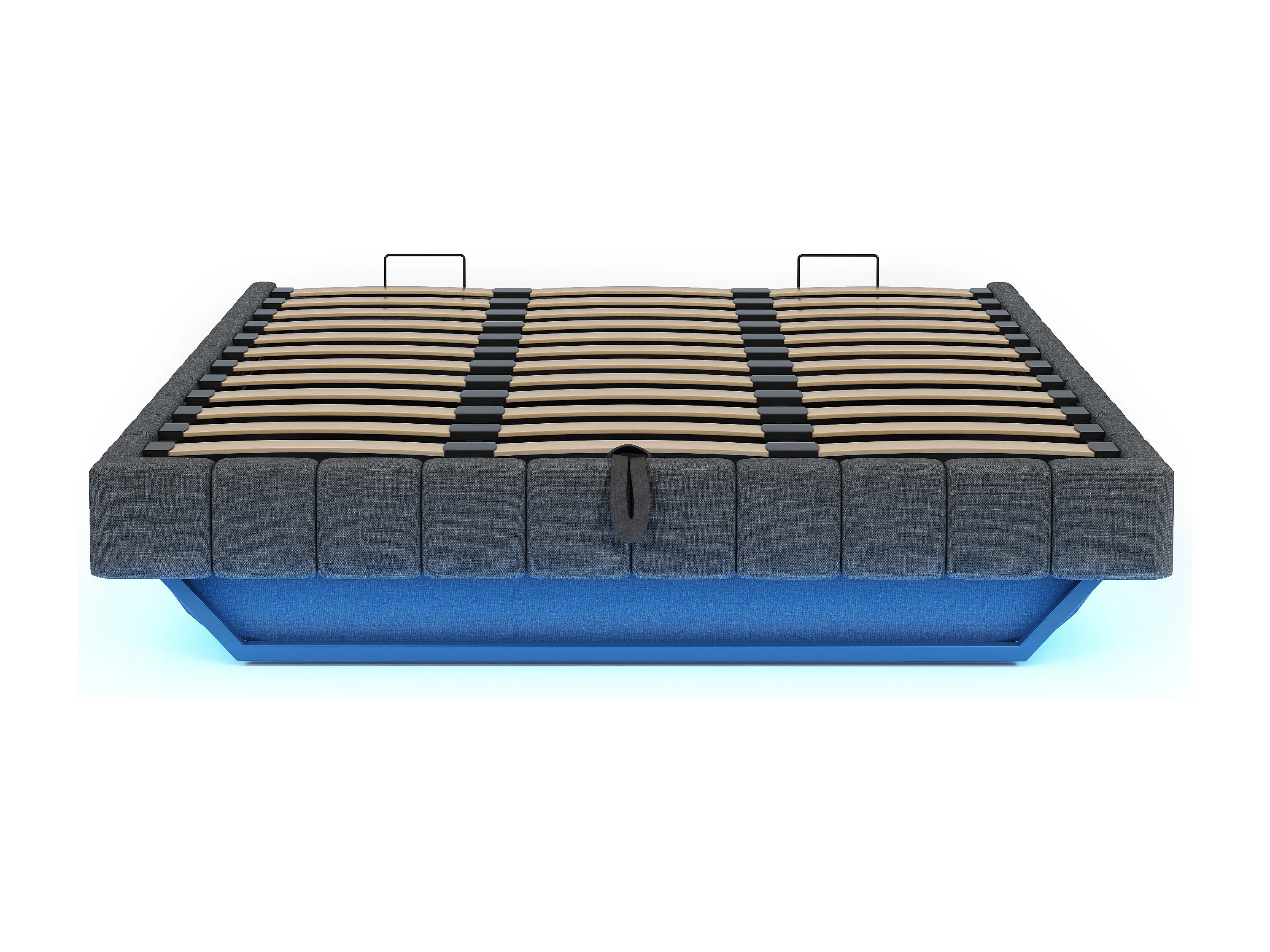 Gestoffeerd Bed 180x200 cm - Zwevend Design Met Kleurwisselende LED - Hydraulisch Opbergbed Met Liftmechanisme - Zonder Matras - Linnen Stof - Grijs