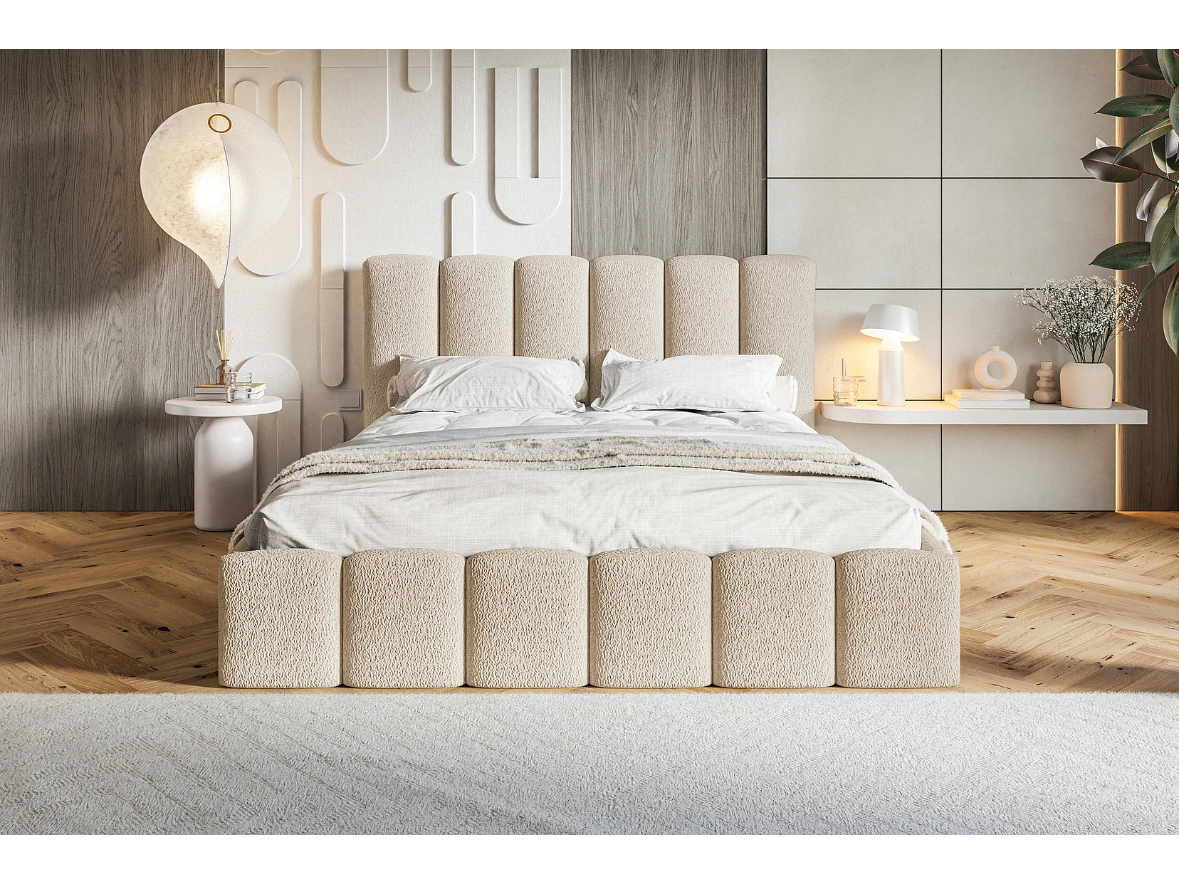 Gestoffeerd bed 180x200 Palermo met metalen lattenbodem - opbergruimte, Bouclé Beige (Anthology 3)