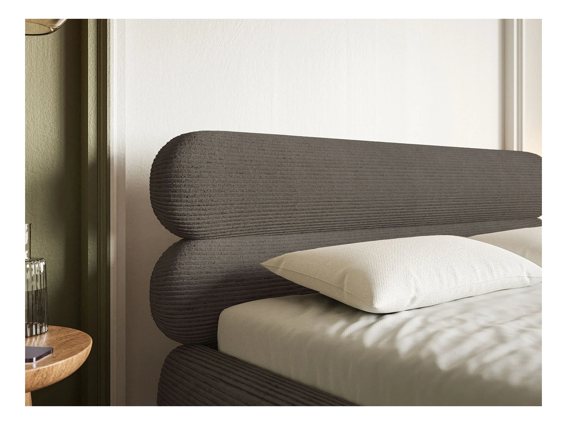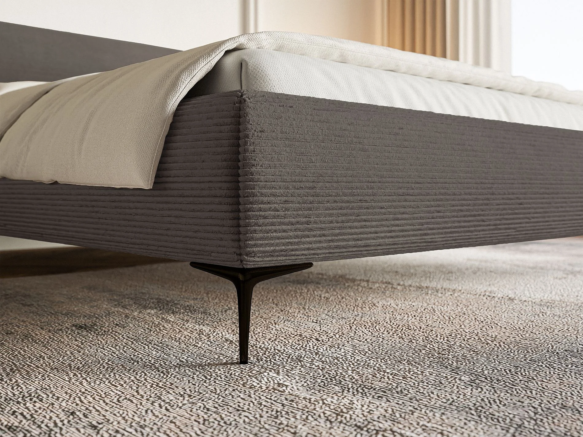 Gestoffeerd bed 180×200 – ribfluweel en zwarte poten – grijs – ROULE CORD