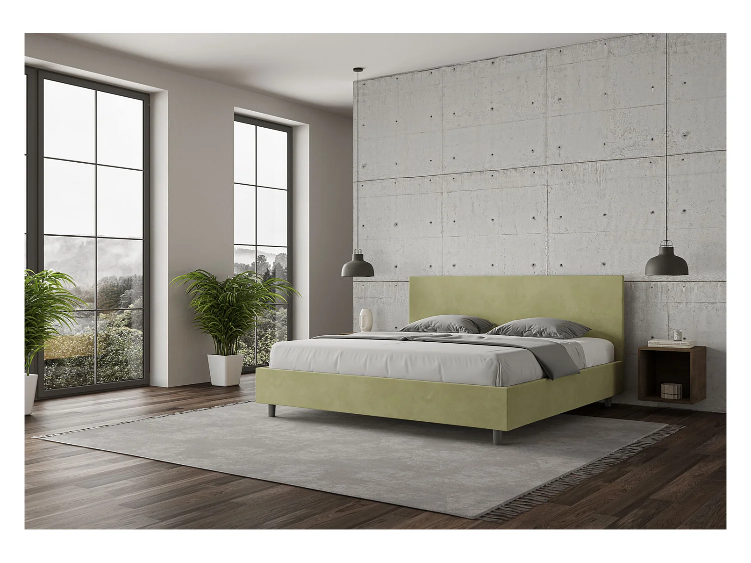 Adele groene thee microvezel bed met gewatteerde bodem 200x200