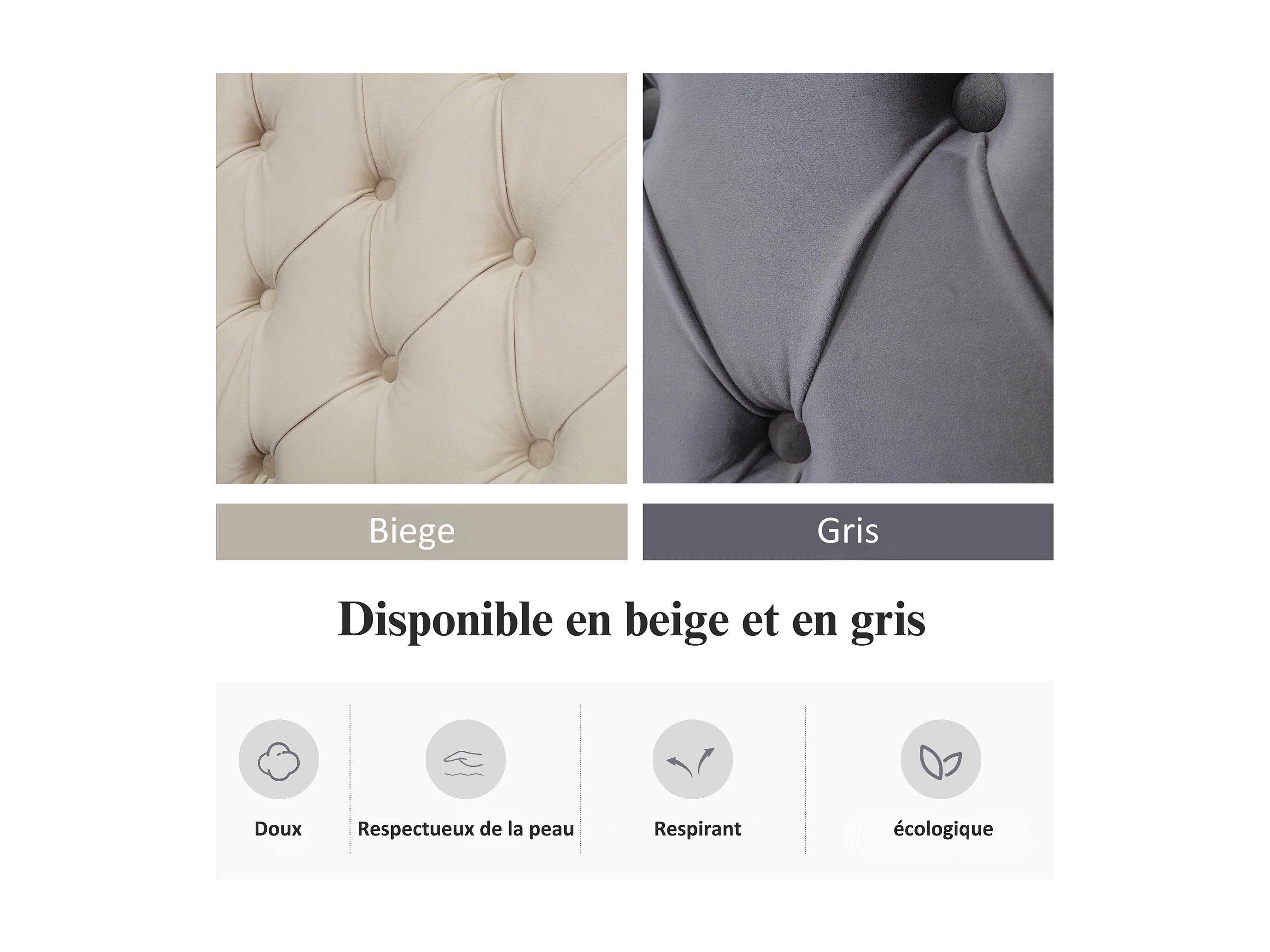 Gestoffeerd bed 140x190 cm met hoofdbord en lattenbodem, knopen, decoratieve nagels, houten poten, grijs fluweel (140x190x108 cm) ### Productdetails: