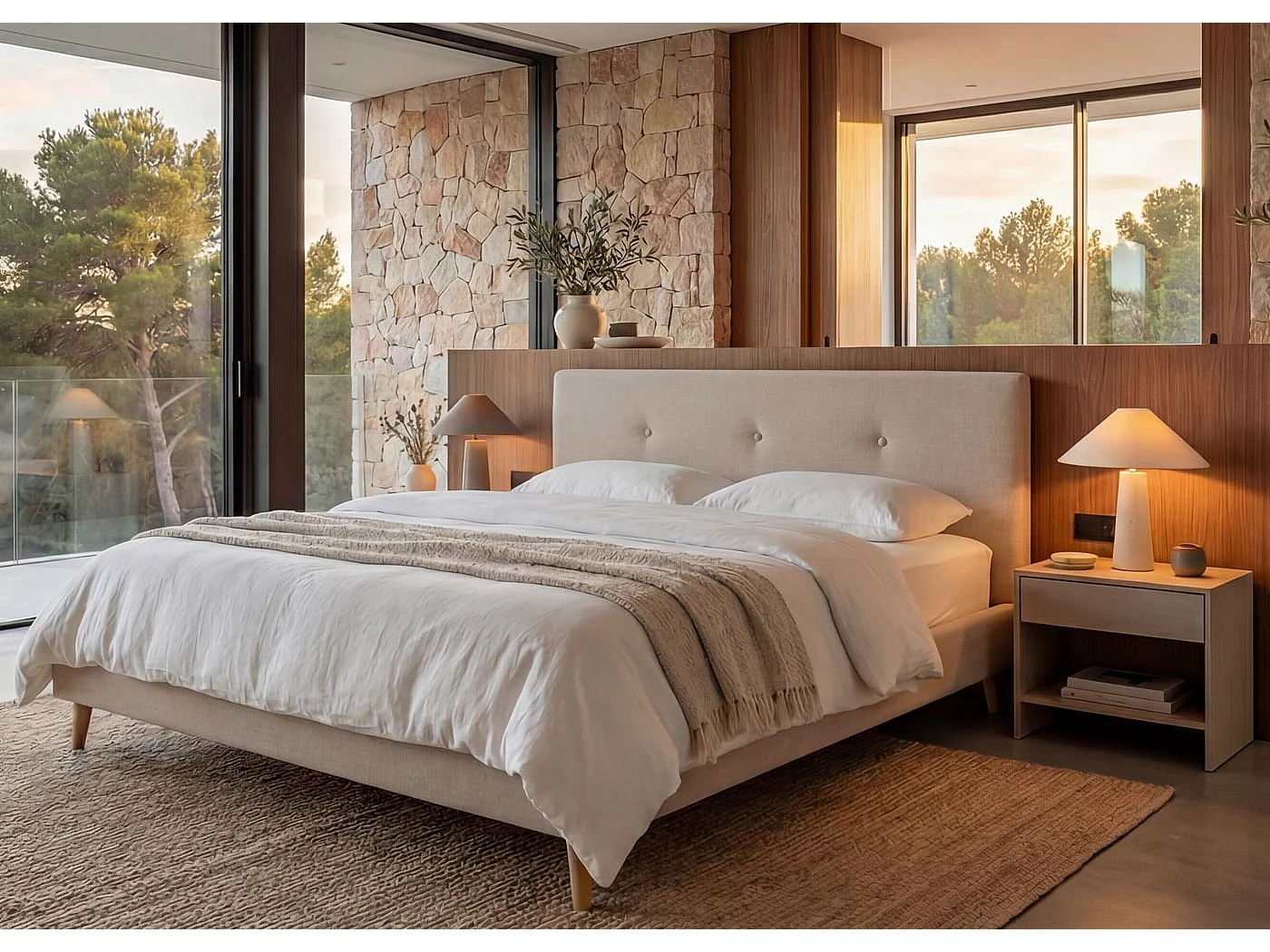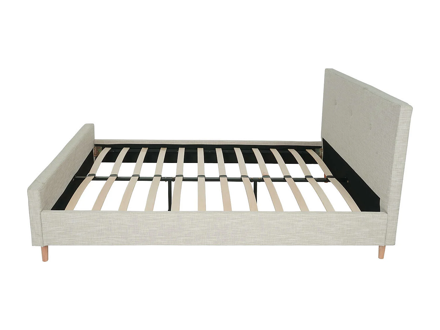 Gestoffeerd bed MCW-J98 + lattenbodem 160 cm, 160x200cm crème-beige