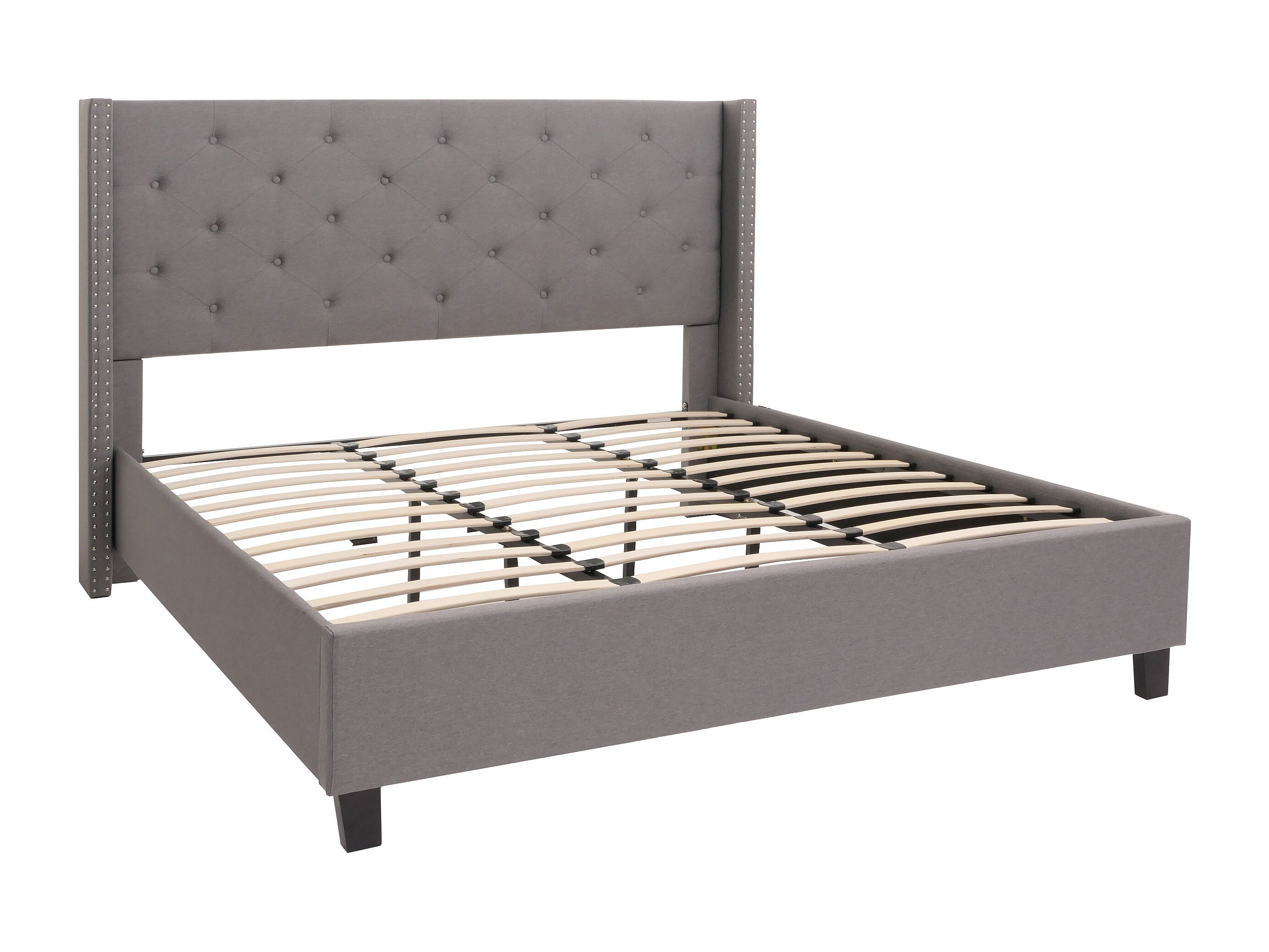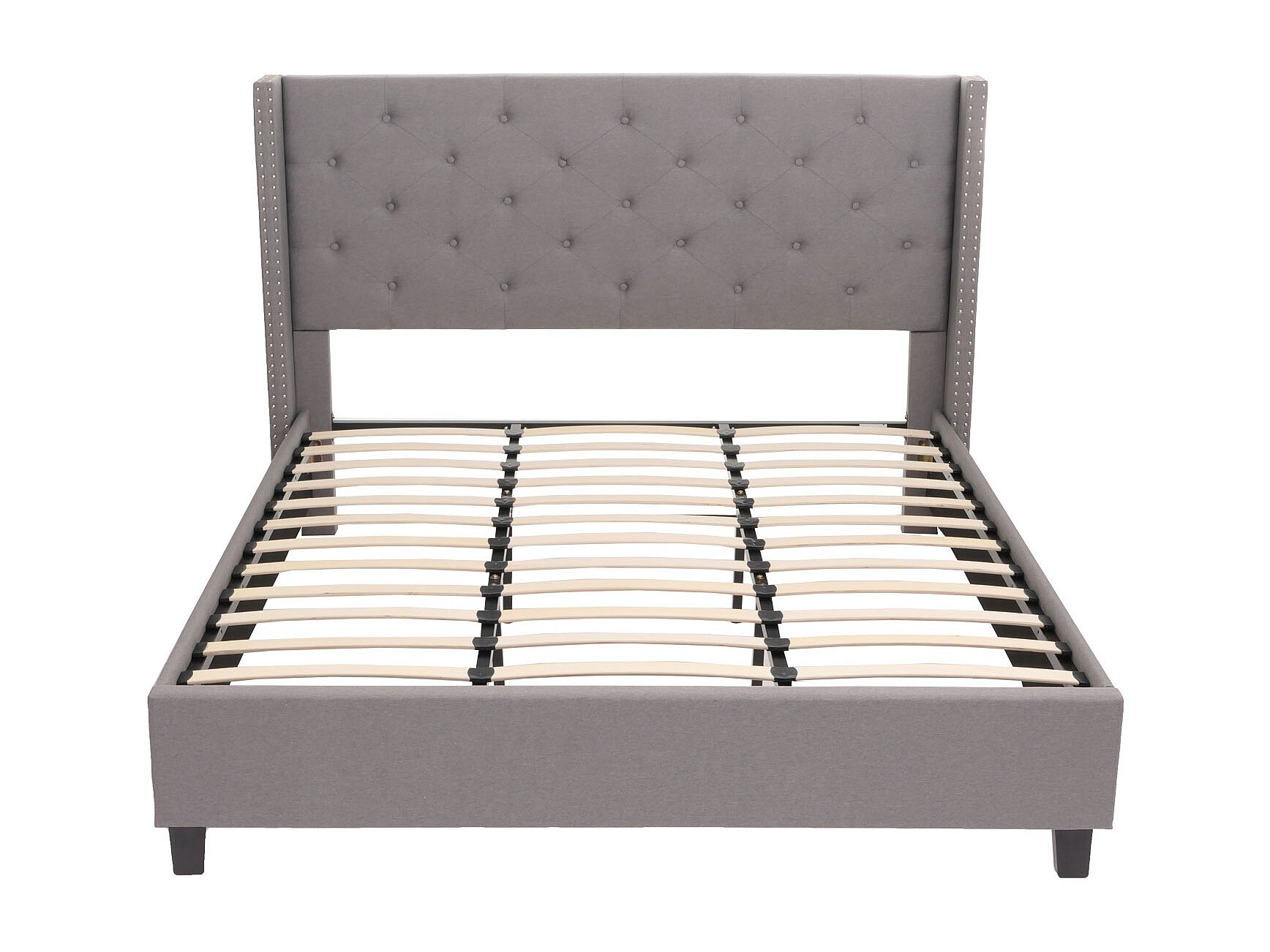 Gestoffeerd bed MCW-J98 + lattenbodem 160cm, 160x200cm grijs