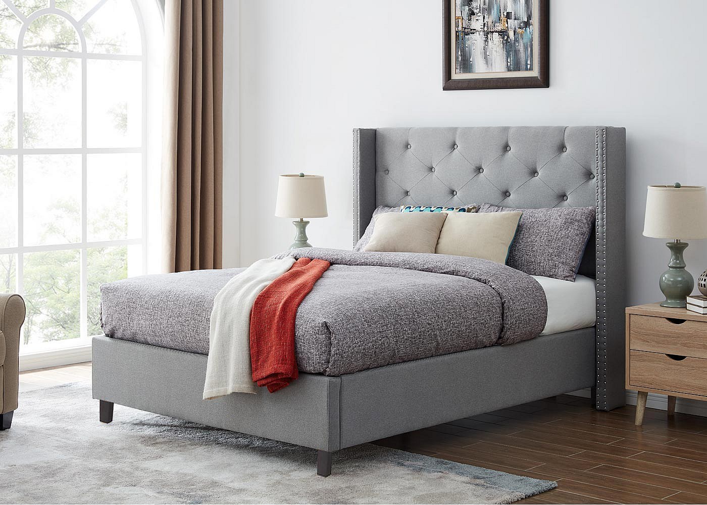 Bedframe "Andy" van stof 140x190cm - Antraciet grijs