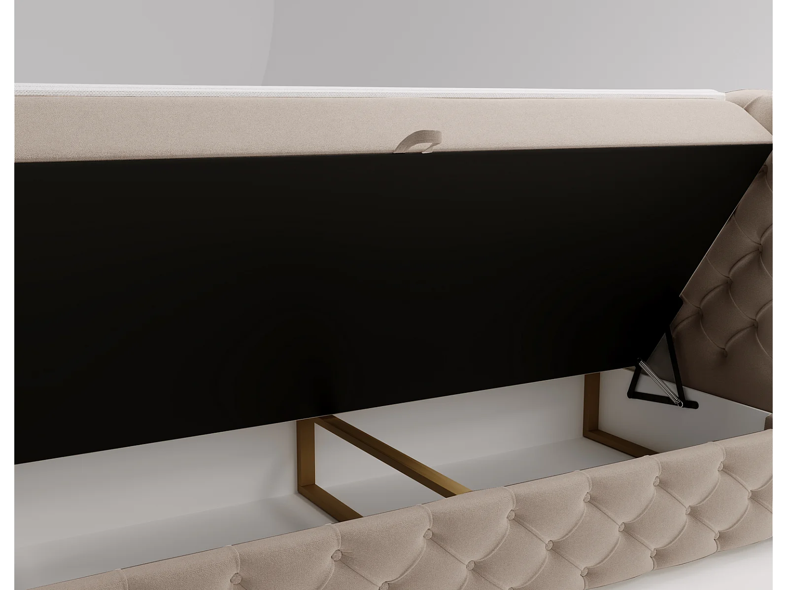 Gestoffeerd bed met matras 140x200 Royal - bed 140x200 met opbergruimte, topper, beige (Royal Velvet 3)