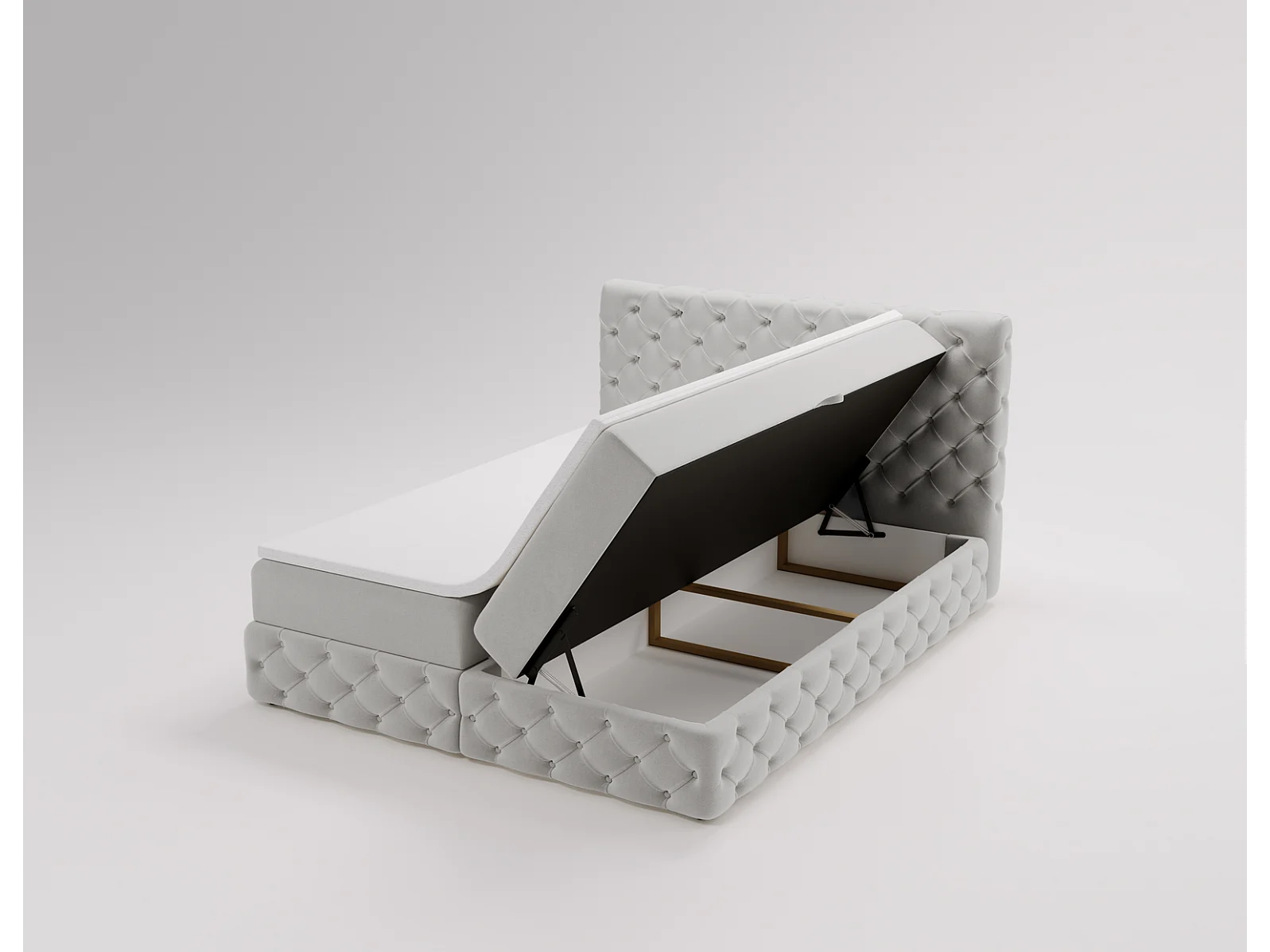 Gestoffeerd bed met matras 140x200 Royal - bed 140x200 met opbergruimte, topper, lichtgrijs (Royal Velvet 17)