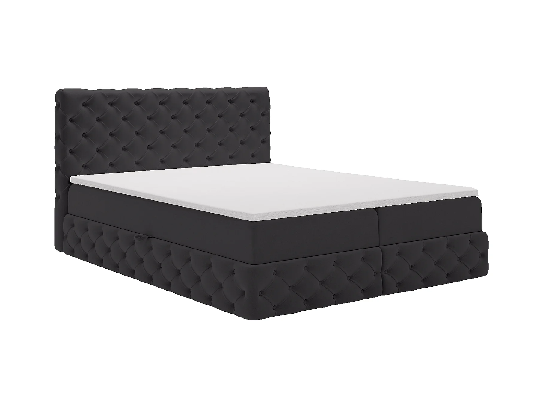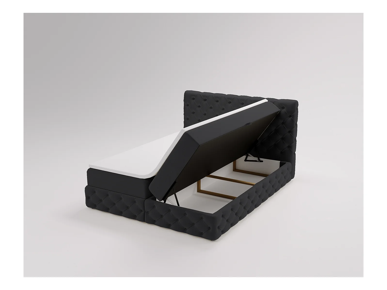 Gestoffeerd bed met matras 160x200 Royal - bed 160x200 met opbergruimte, topper, zwart (Royal Velvet 22)