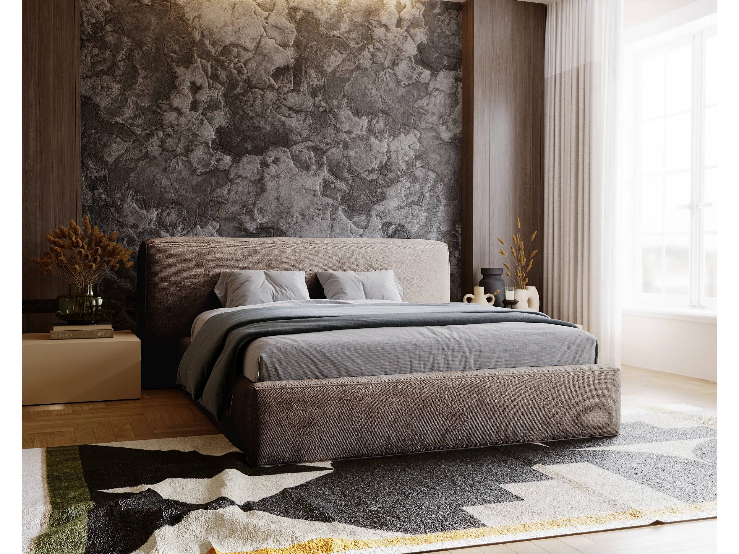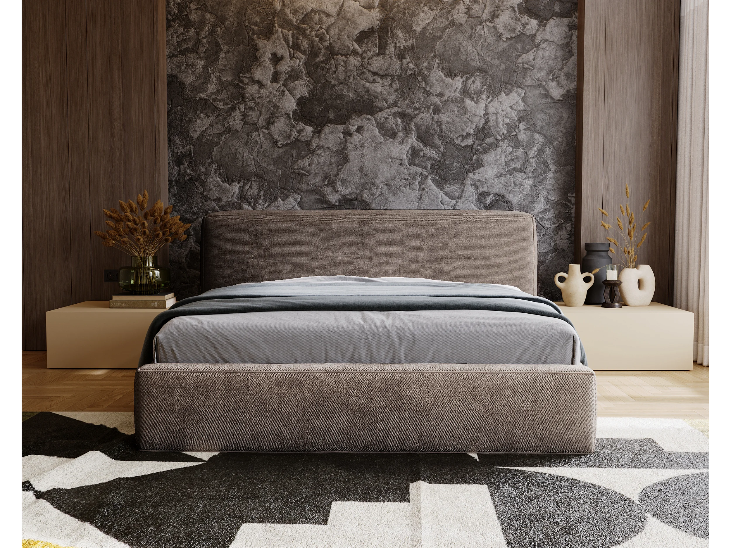Gestoffeerd bed Monza 160x200 bruin - opbergruimte voor beddengoed, houten lattenbodem, doorgestikt hoofdbord en bedframe