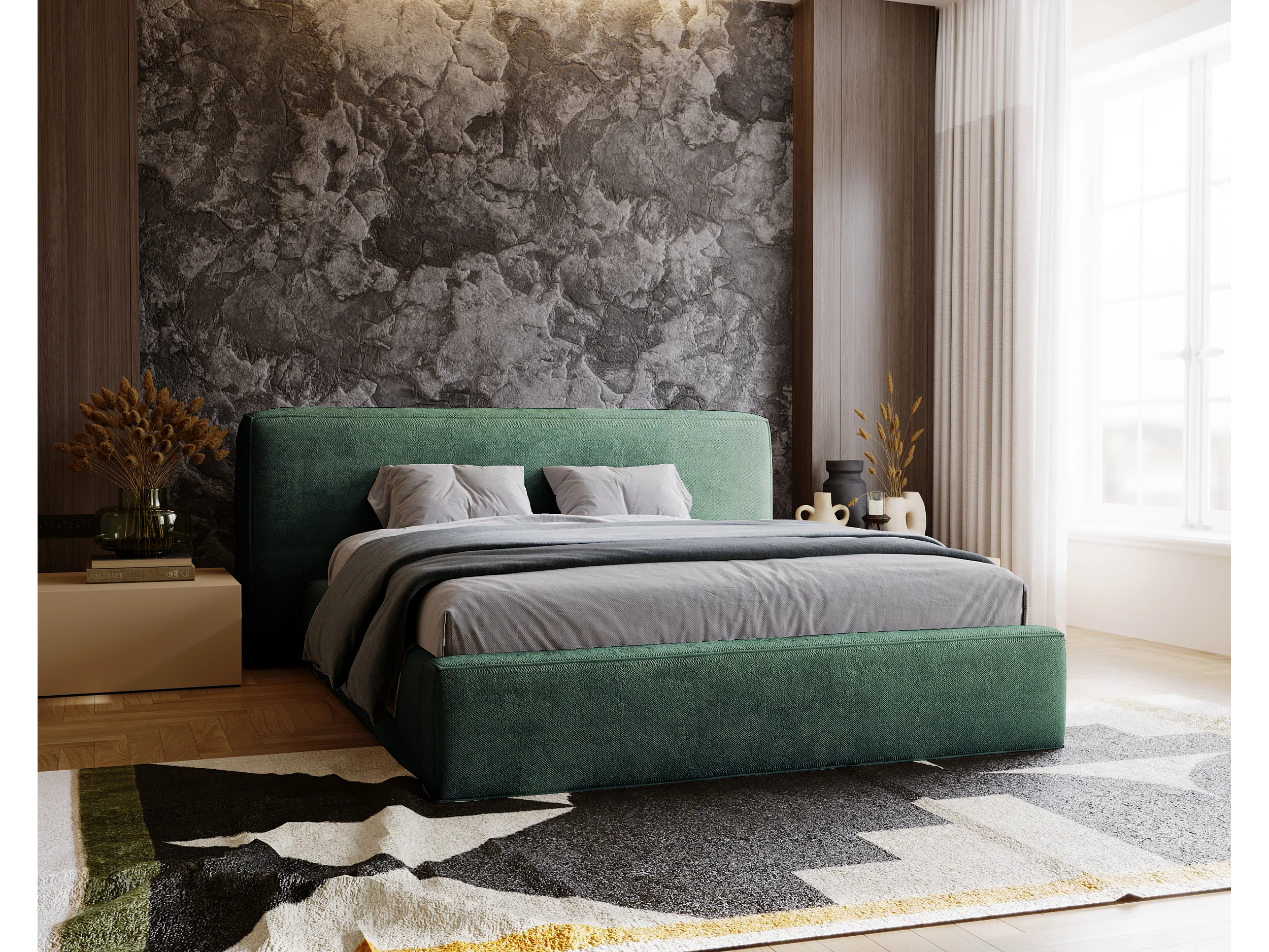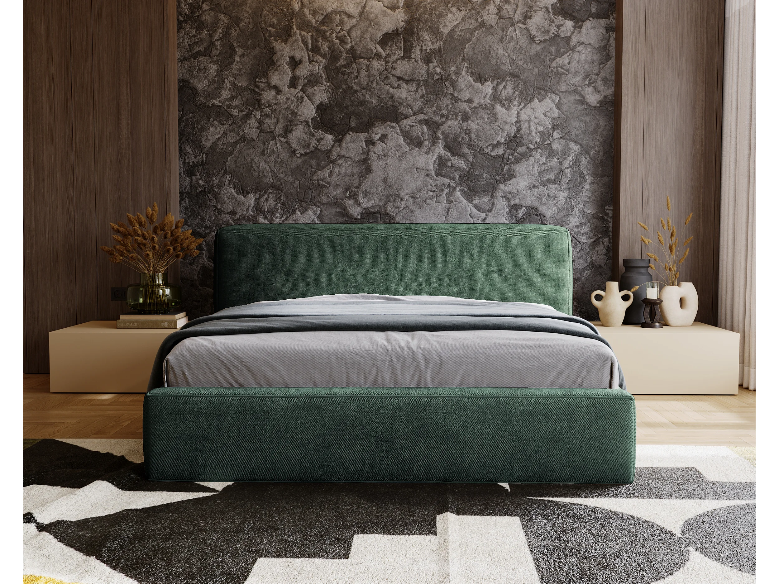 Gestoffeerd bed Monza 160x200 groen - opbergruimte voor beddengoed, houten lattenbodem, doorgestikt hoofdbord en bedframe