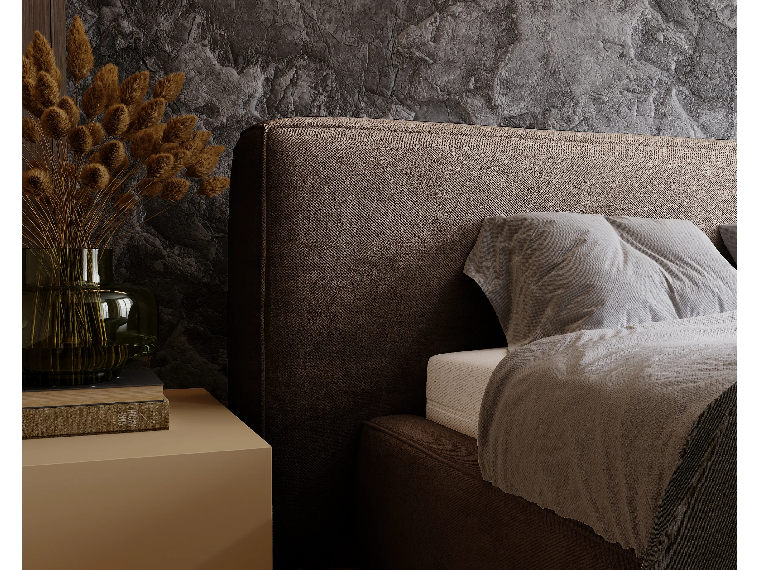 Gestoffeerd bed Monza 180x200 bruin - opbergruimte voor beddengoed, houten lattenbodem, doorgestikt hoofdbord en bedframe