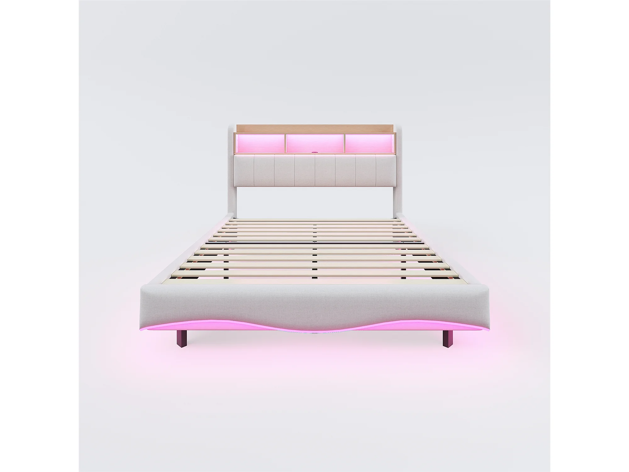 Gestoffeerd design hangbed 160x200cm, opbergbed met ledverlichting, USB- en TYPE-C, linnen, beige, matras niet inbegrepen