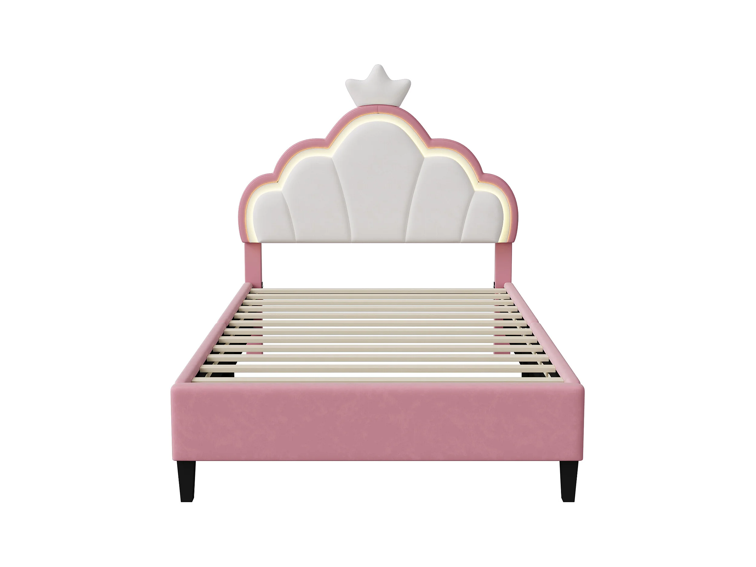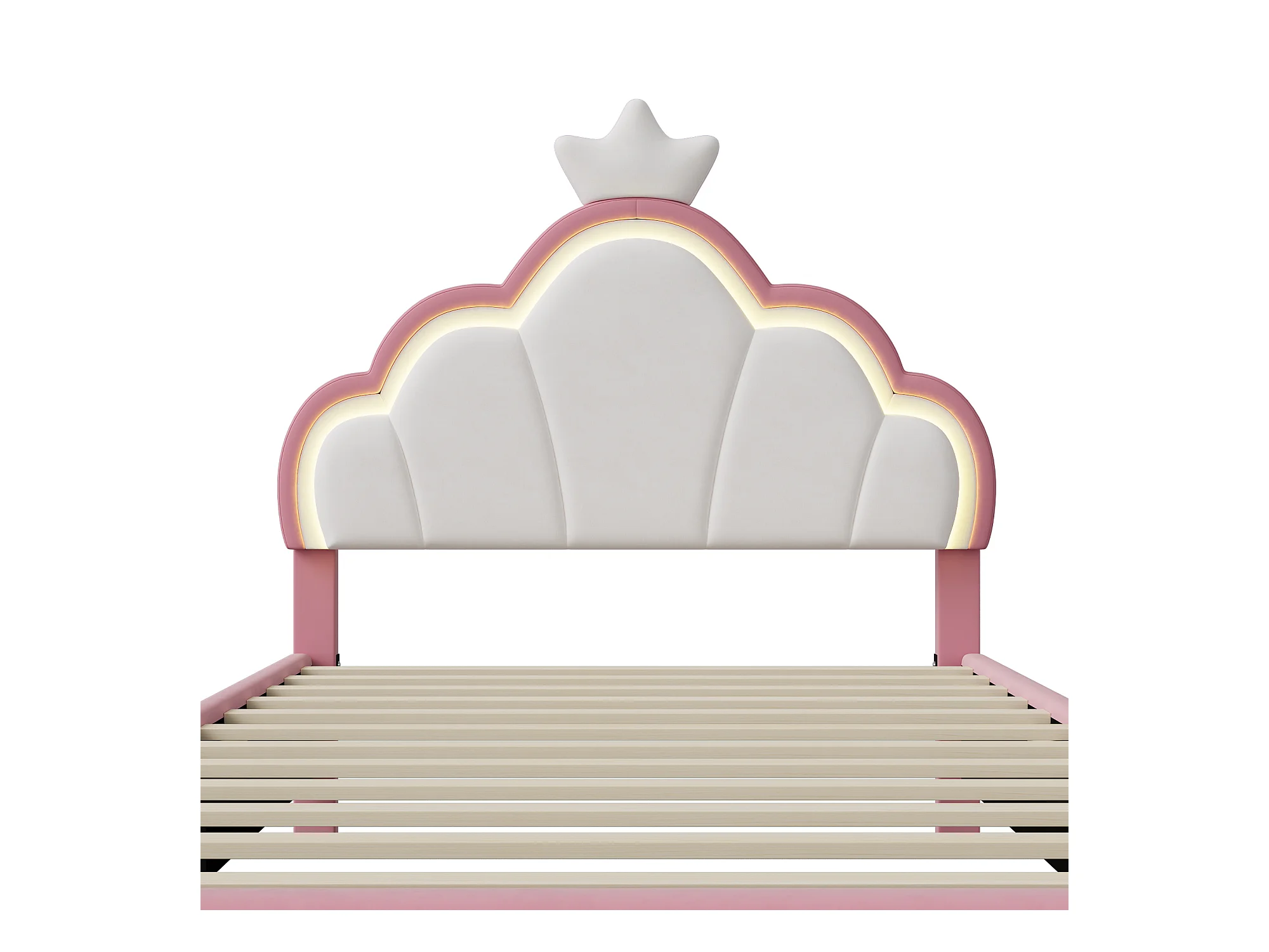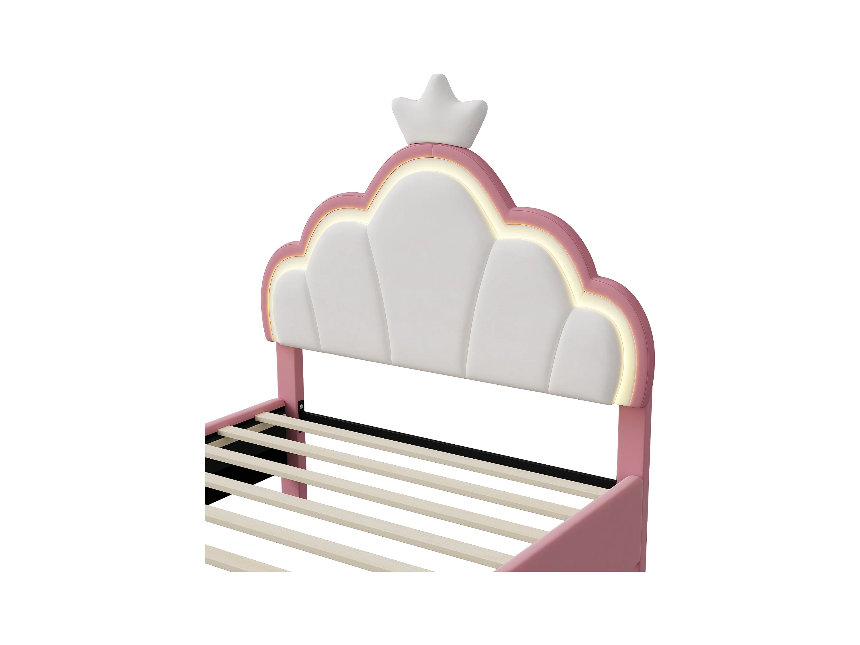Gestoffeerd kinderbed 90 x 200 cm met LED, prinsessenkroonbed, polyurethaan, roze