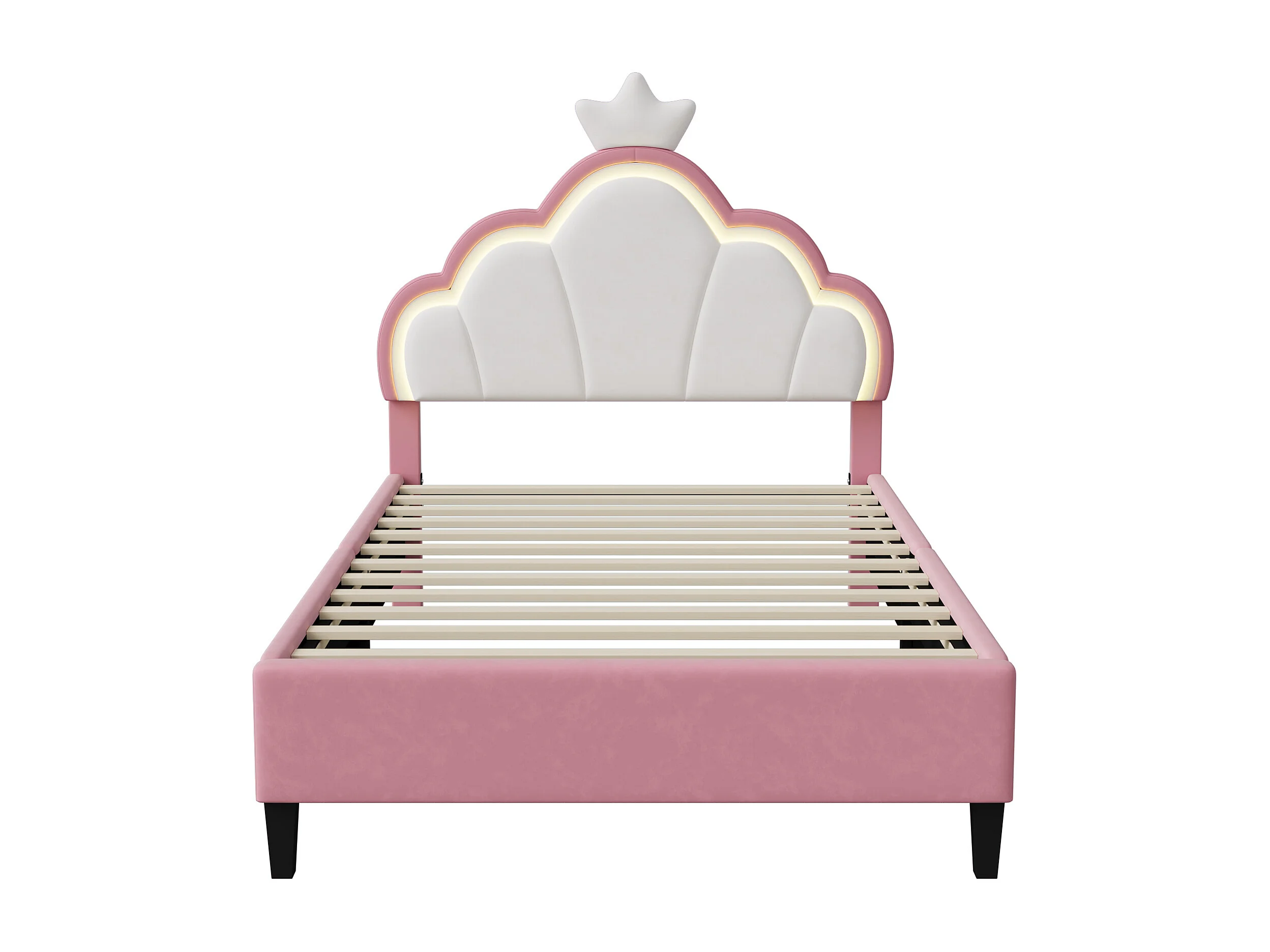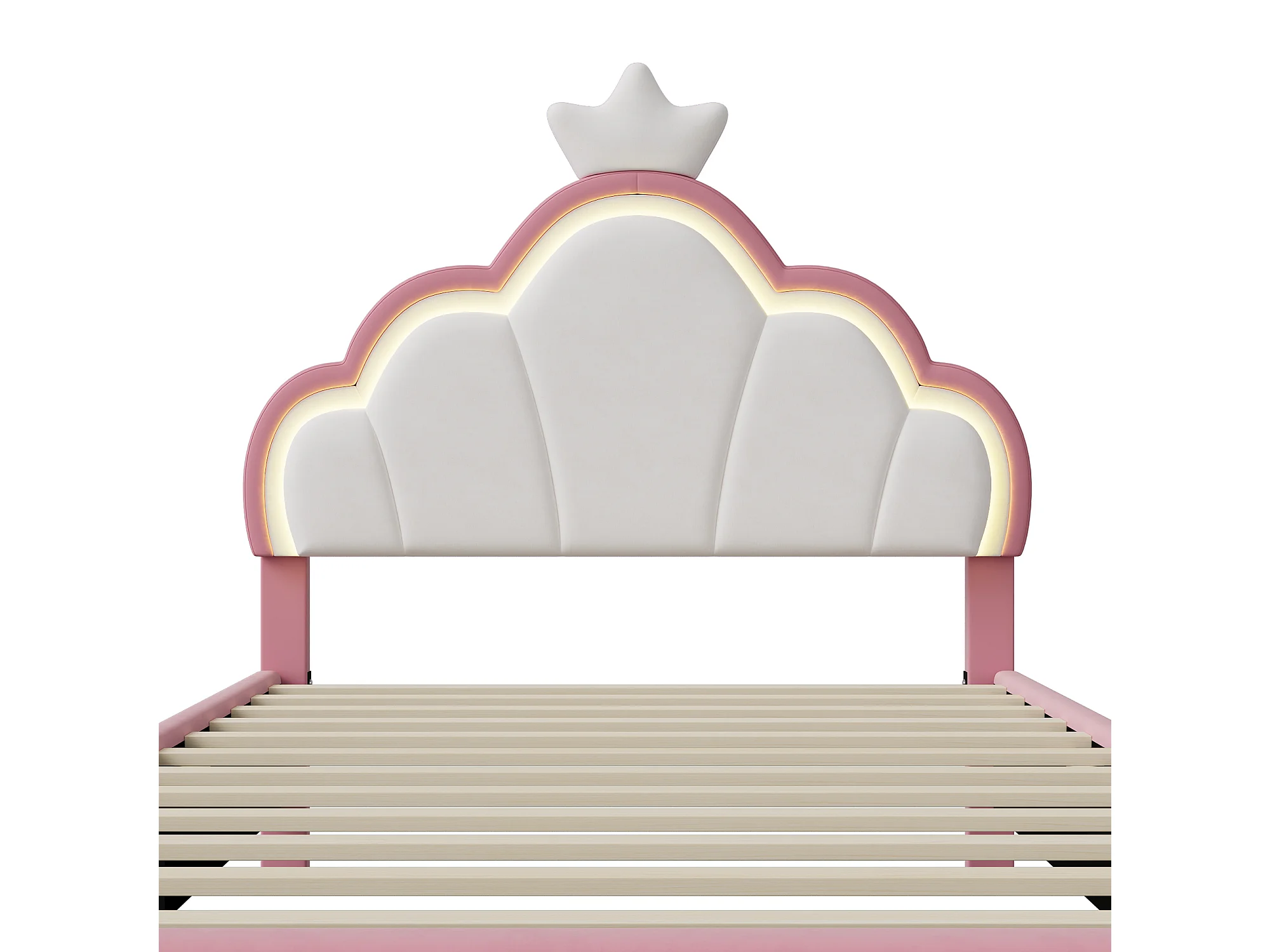 Gestoffeerd kinderbed 90 x 200 cm met LED, prinsessenkroonbed, polyurethaan, roze