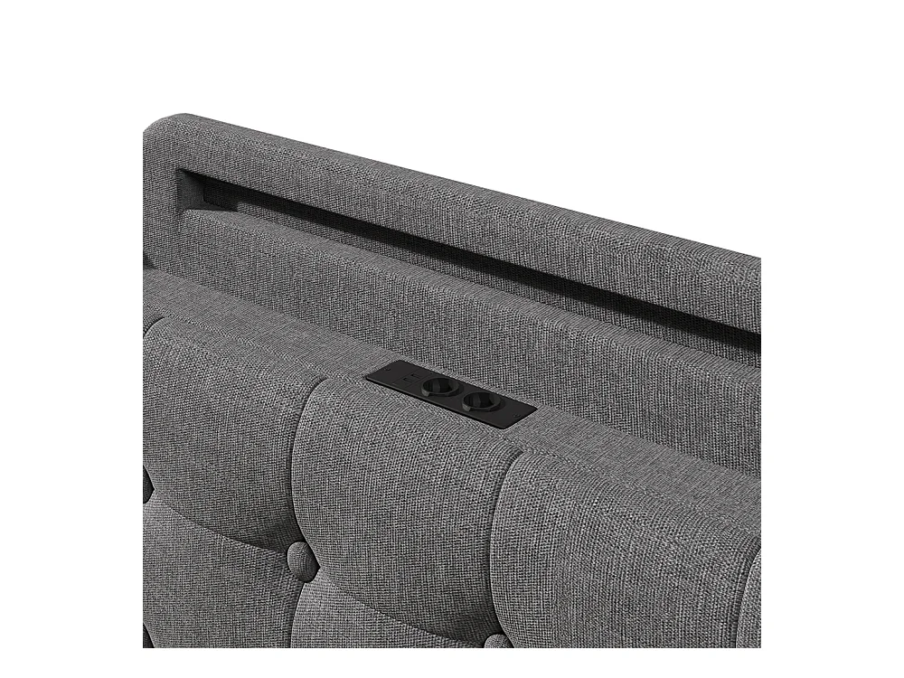 140x200 Opbergbed met USB en Type C, Gestoffeerd bed met lattenbodem, Tweepersoonsbed, Grijs