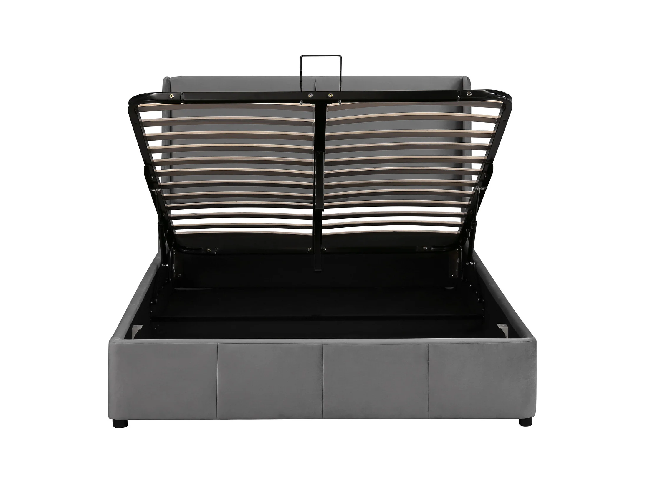 Gestoffeerd tweepersoonsbed, 140 x 200 cm, met opbergvak onder het bed, lattenbodem, grijs