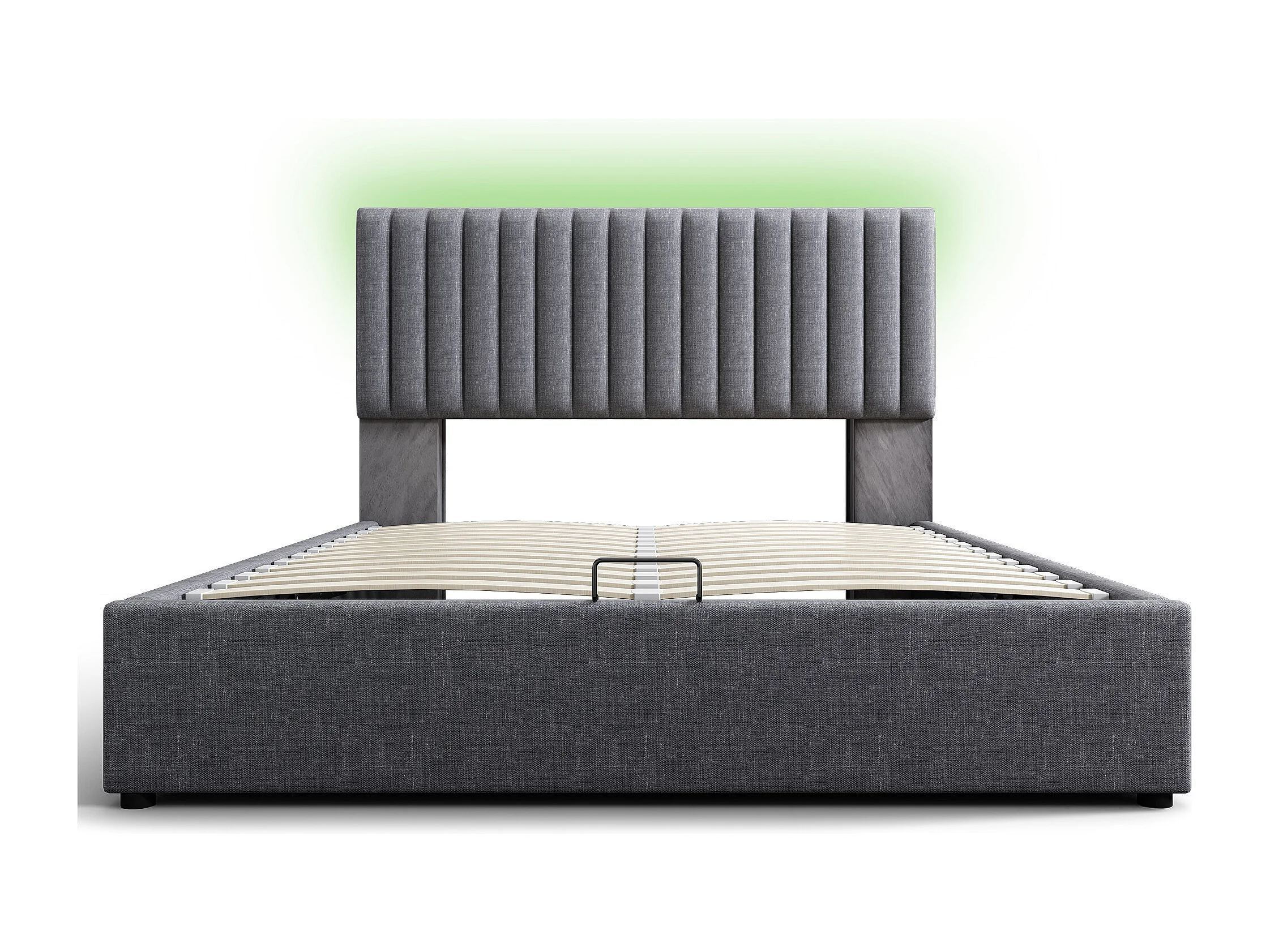 Gestoffeerd tweepersoonsbed 160x200cm, met ledverlichting, USB Type-C, opbergruimte en lattenbodem, linnen, grijs, inclusief matras