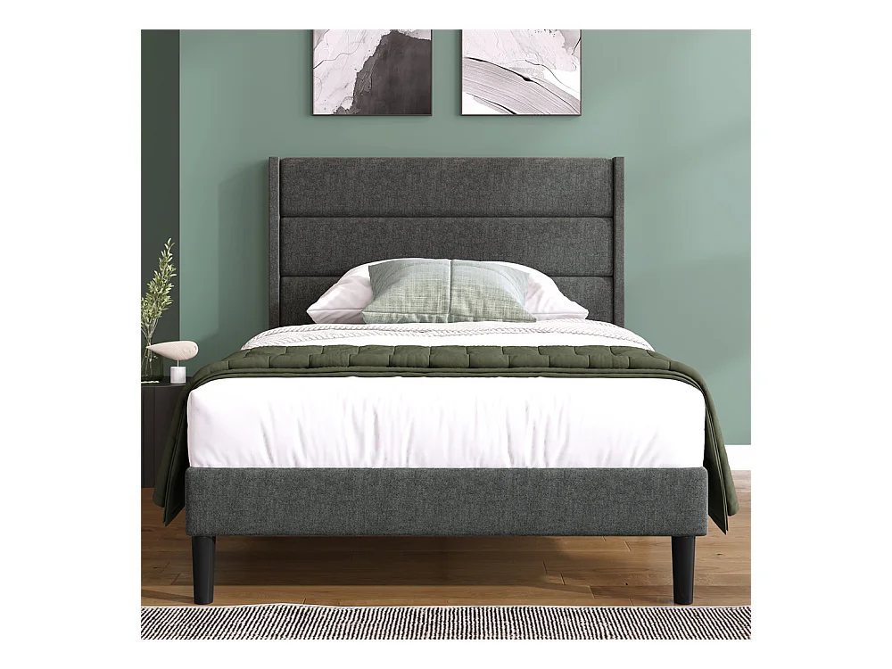 Gestoffeerd bed in linnenstof - 90x200cm - met hoofdeinde en lattenbodem - Grijs