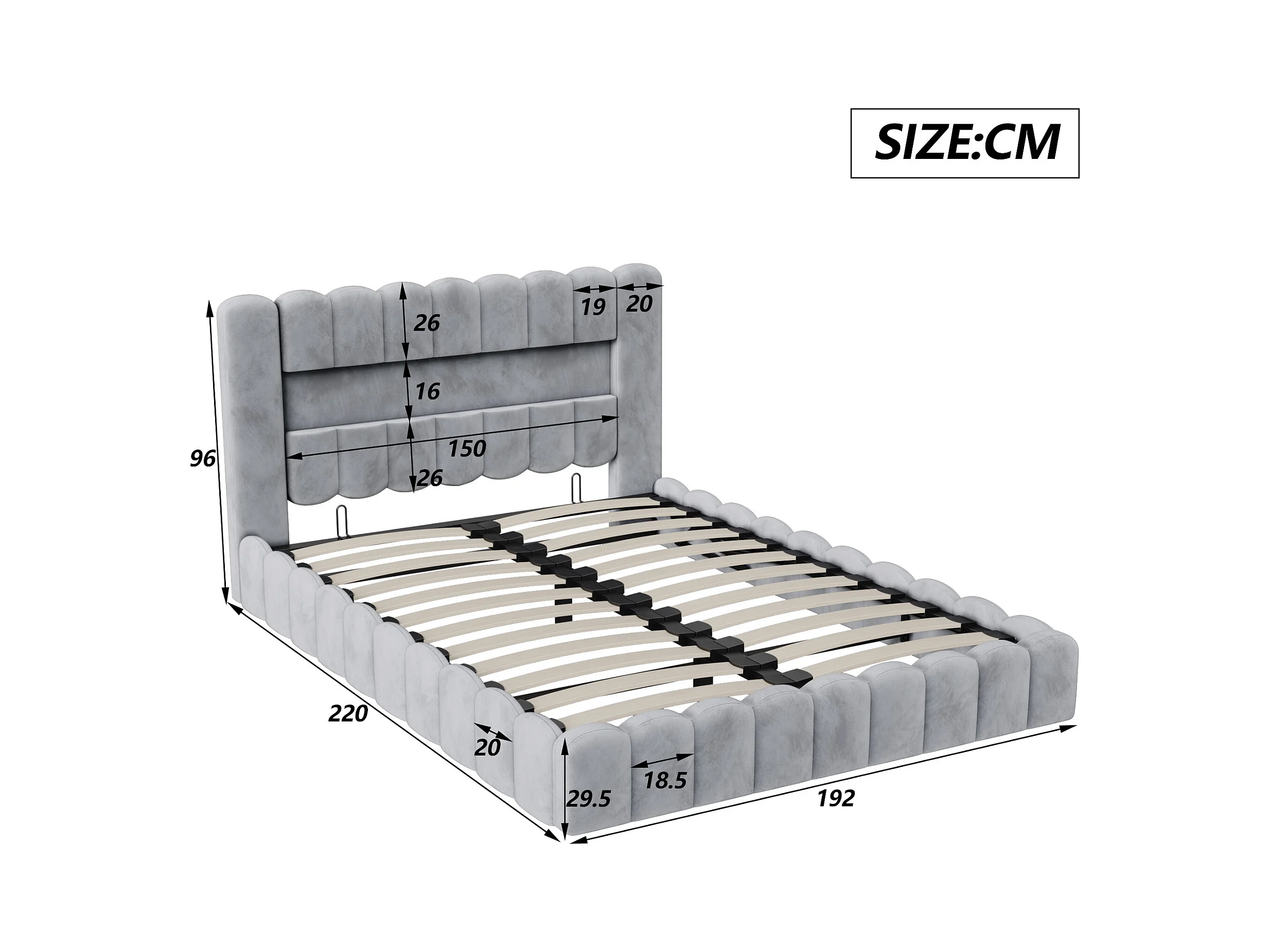 Gestoffeerd tweepersoonsbed, bubbel, 180 x 200 cm, met LED en USB, opbergbed, Grijs