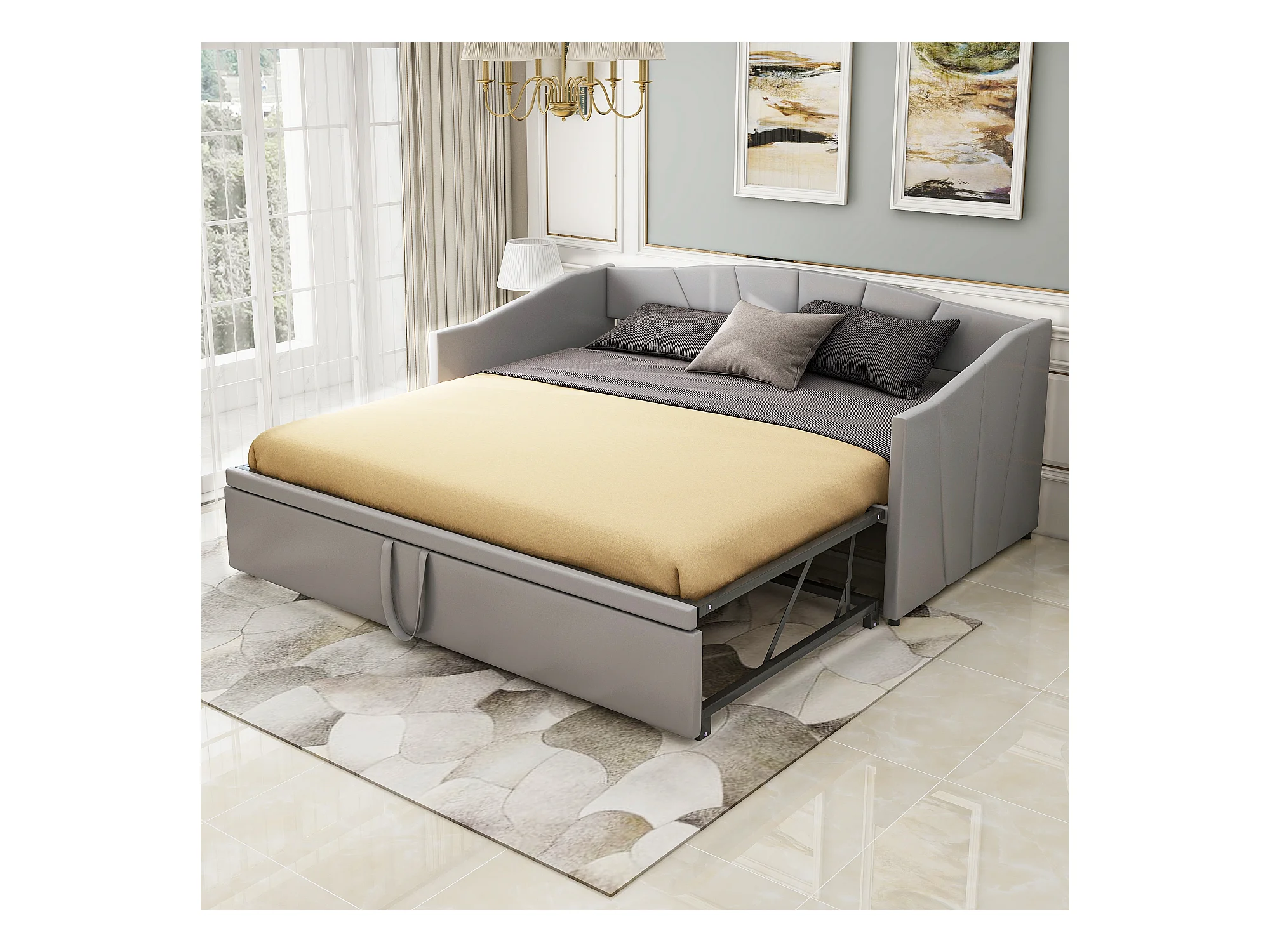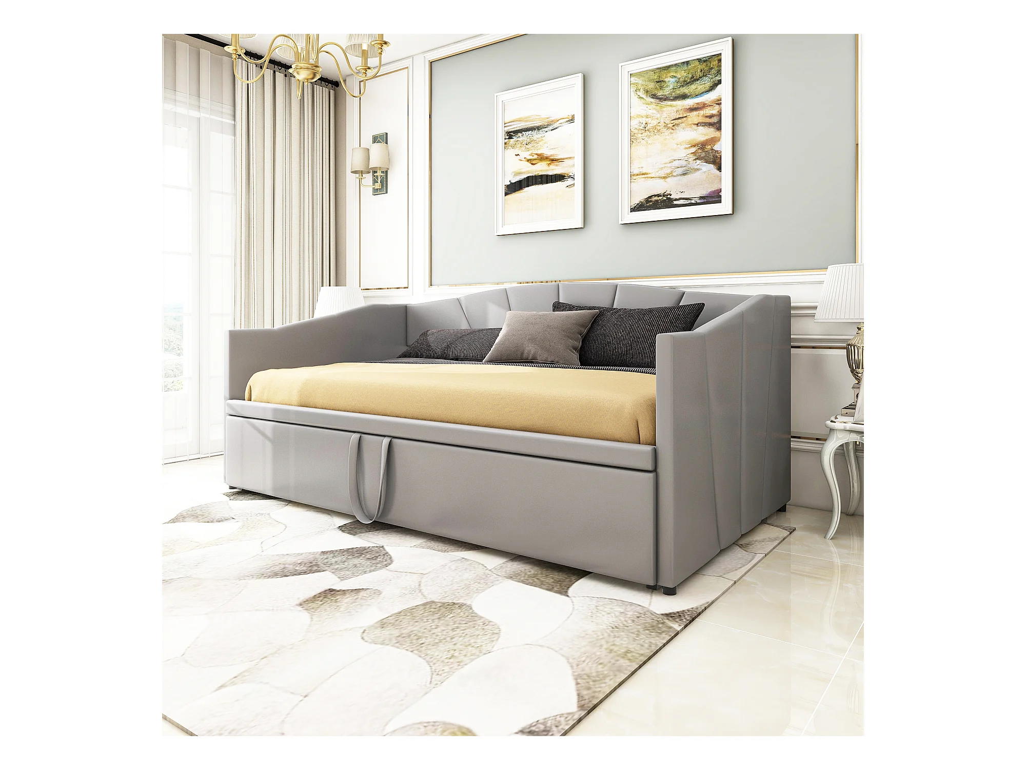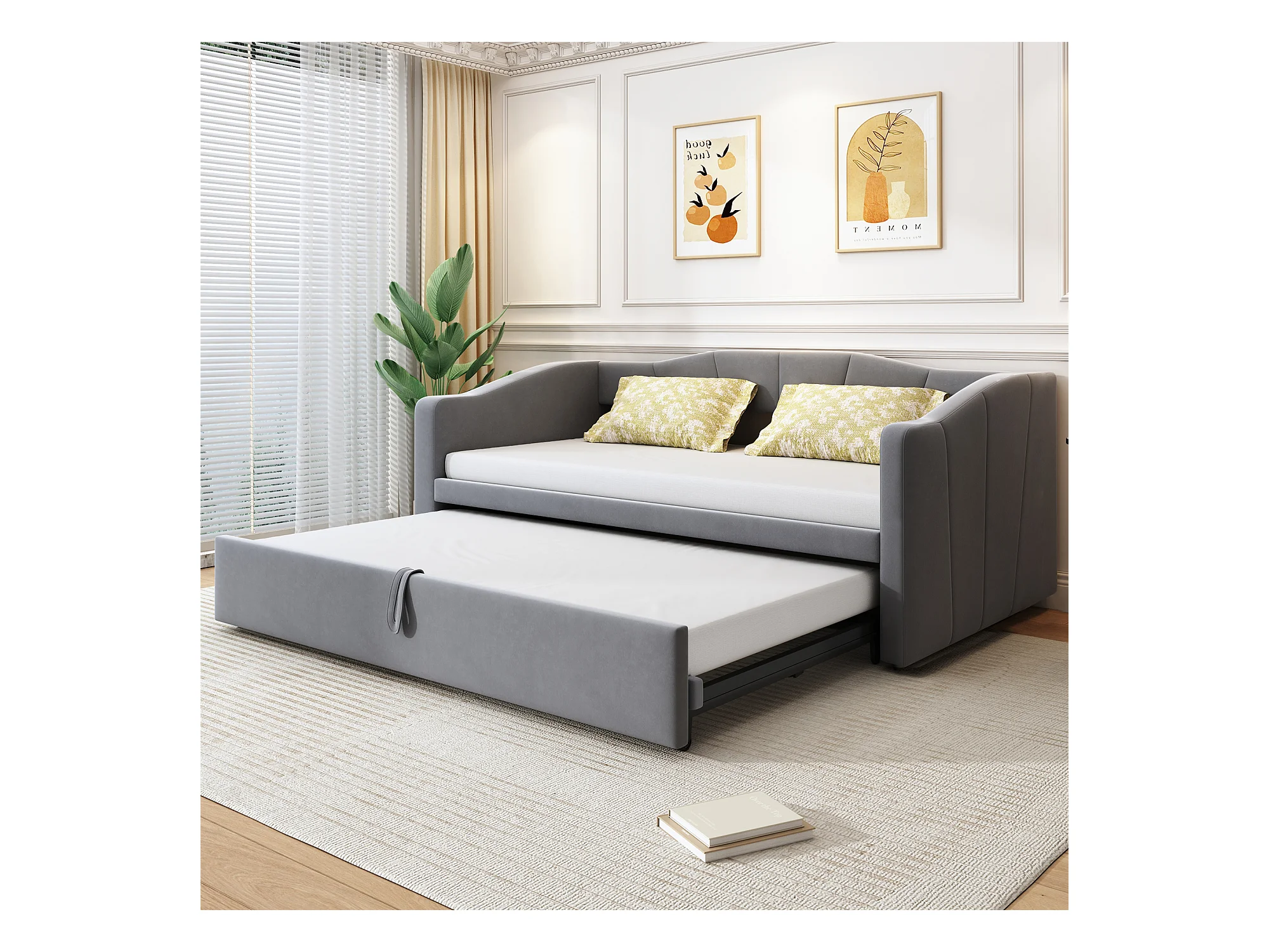 Gestoffeerde slaapbank met uitschuifbaar bed - 90/180 x 200 cm - met lattenbodem - fluweel - grijs