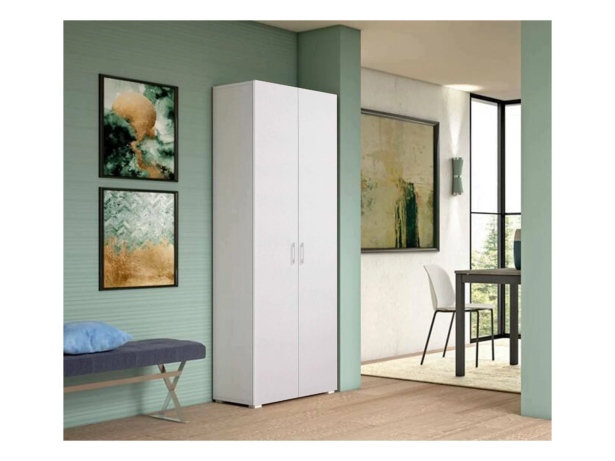 Charleston multifunctionele kledingkast, Bezemkast met 2 deuren, Schoenenrek met planken, Bezemkast, cm73x37h180 cm, Wit