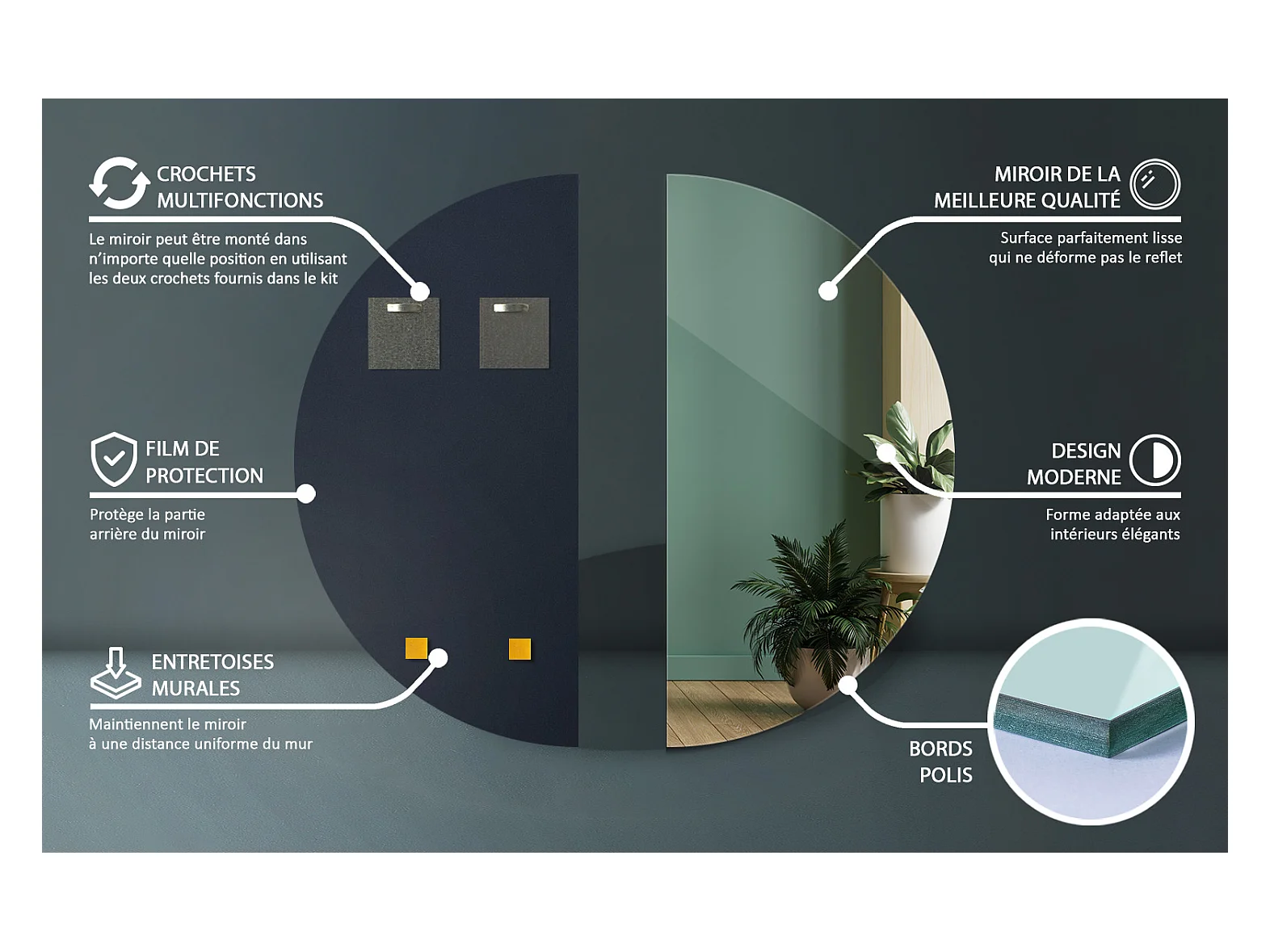 Glamour Badkamerspiegel Klaar om te Monteren 1/2 Ø100