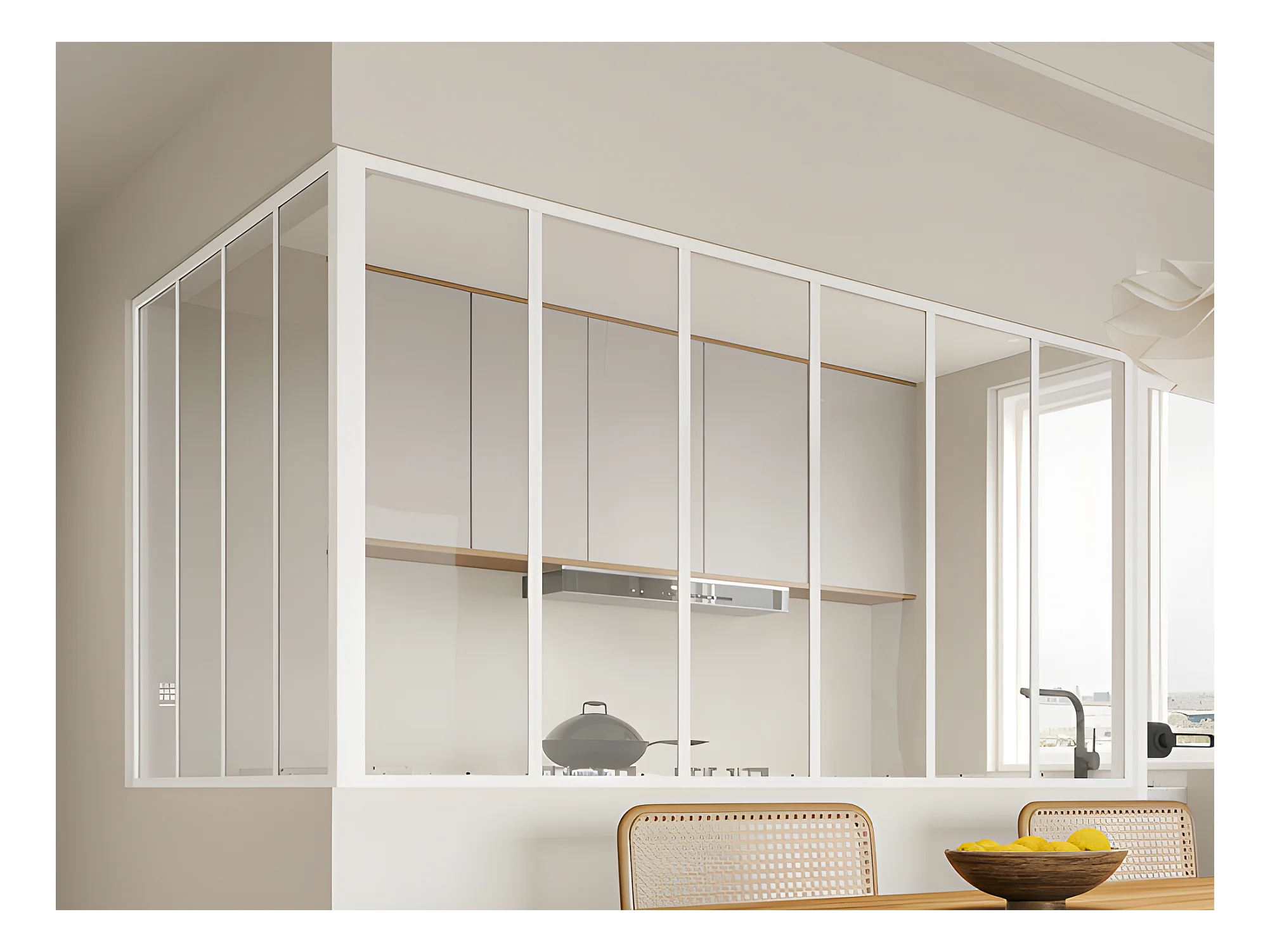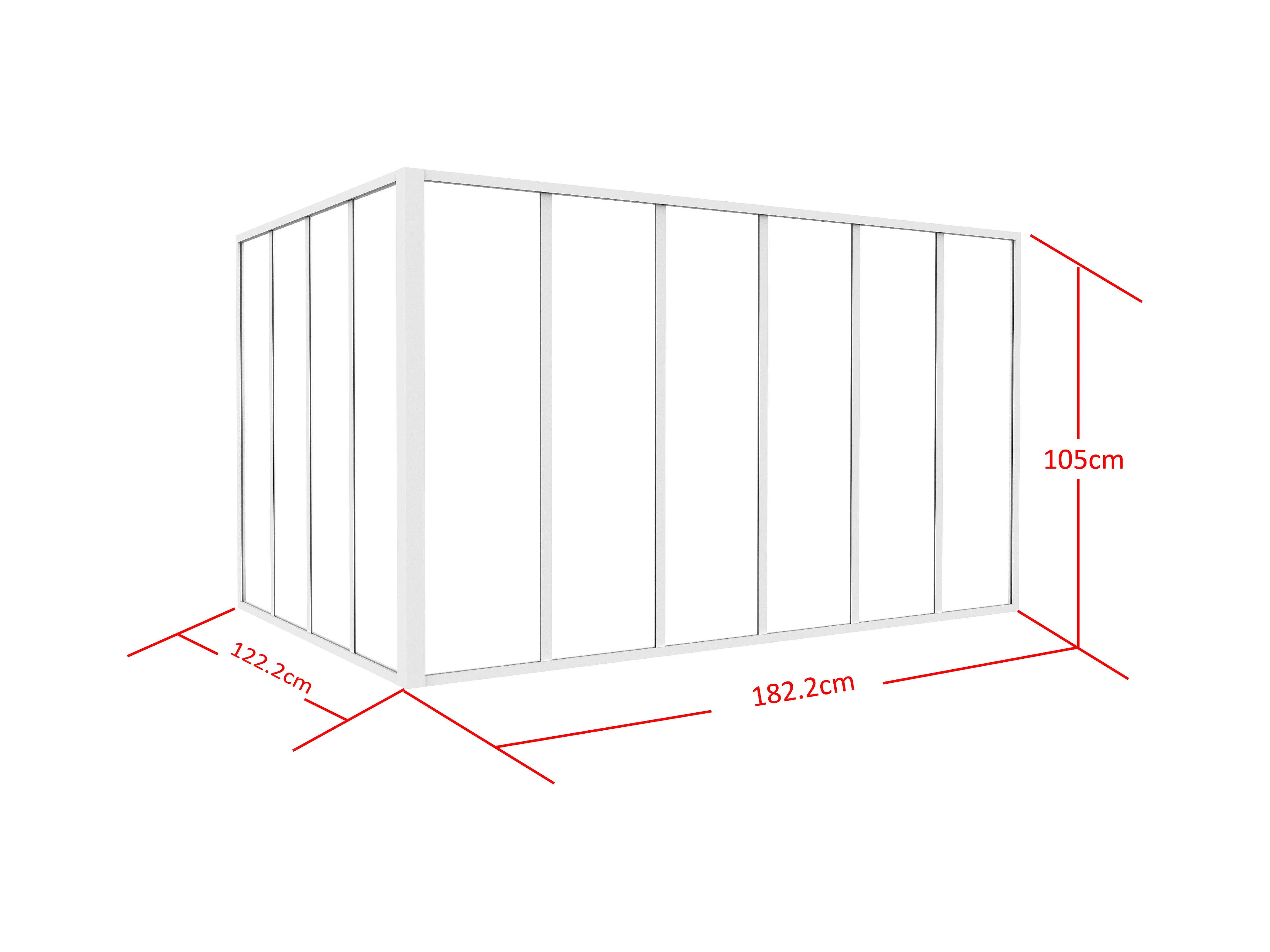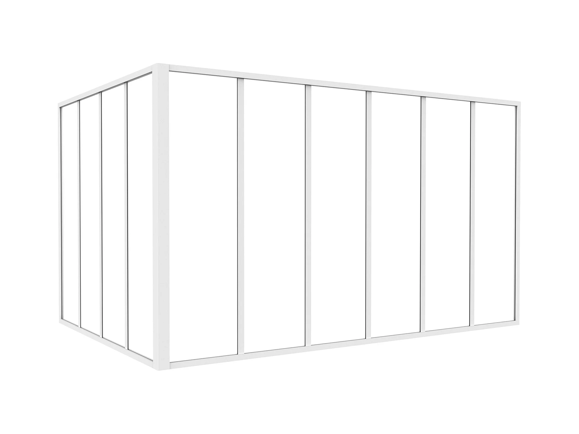 Glazen hoekbinnenraam met industriële stijl van gepoedercoat aluminium – L180 x L120 x H105 – Wit – BAYVIEW