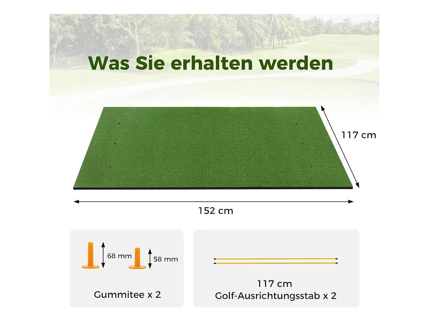 Golf afslagmat, 152 x 117 cm, golfoefenmat incl. 2 rubberen tees en 2 uitlijningsstaven, golfmat, voor binnen en buiten (152 x 117 cm, 25 mm)