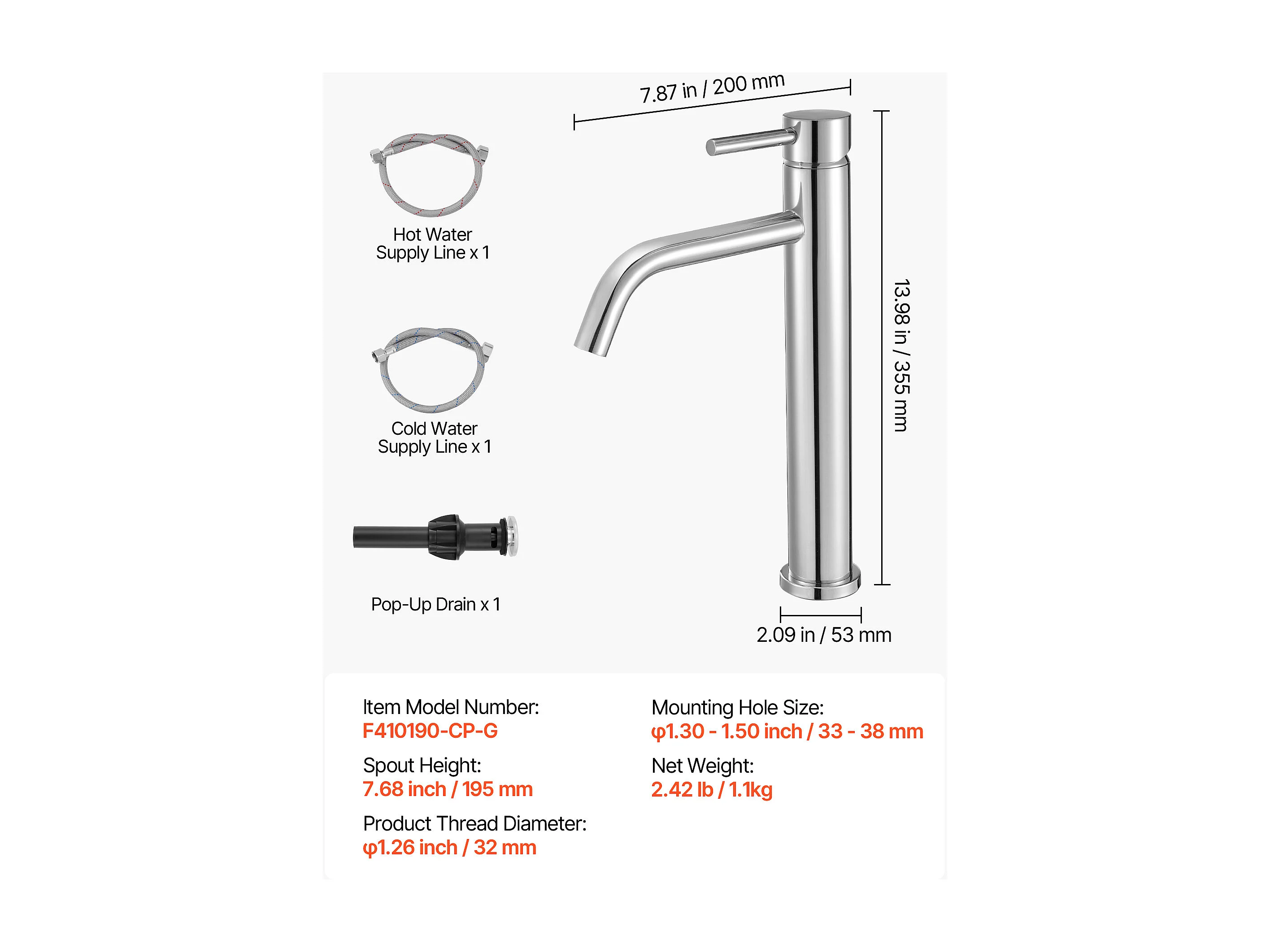 Cecipa max 2PCS Badkamerkraan Waterval Wastafel Mengkraan Handwas Wastafel Kraan met Eengreeps Warm en Koud Water Mixer,EU Model