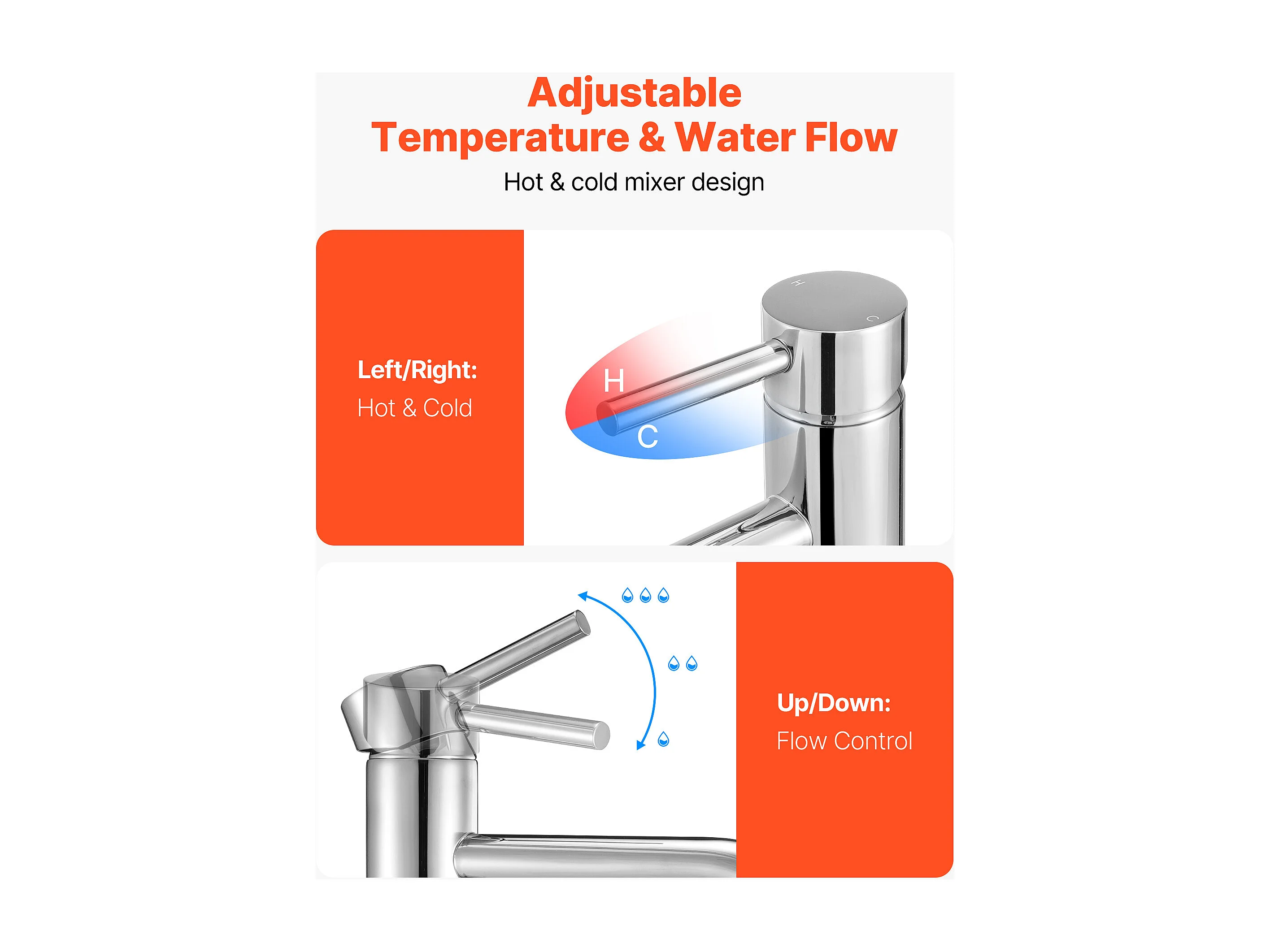 STKS Cecipa max Waterval Wastafelkraan, Wastafelmengkraan met enkele handgreep, Warm en Koud Water, Chroom!, EU-model