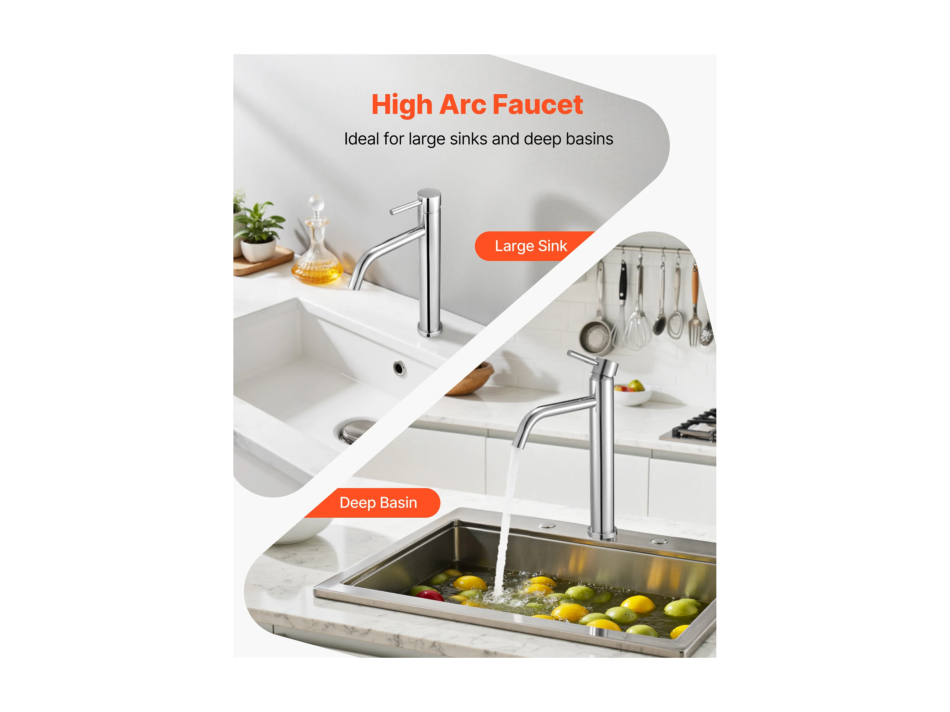 Gootsteen Kraan met Enkele Handgreep SucceBuy, Keuken Mengkraan met Hoge Boog, Waterkranen met 1 of 3 Gaten met Drukknop Ontluchter, voor Badkamer