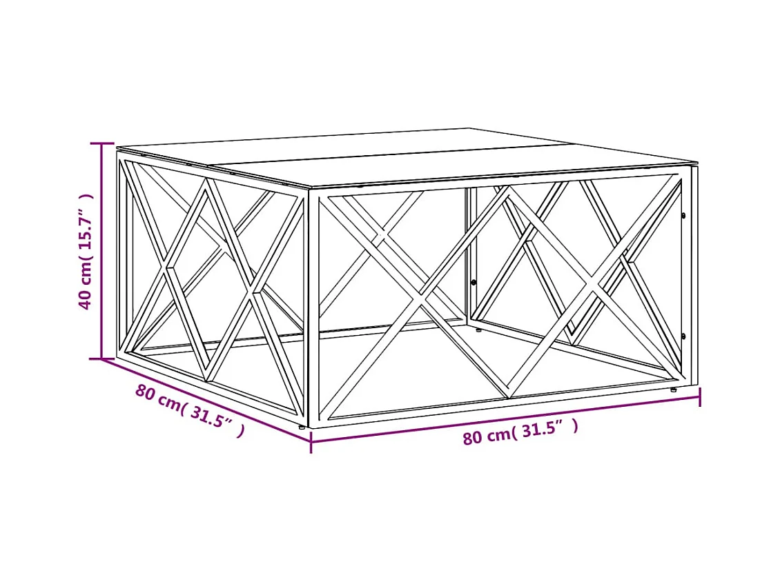 Gouden salontafel 80x80x40 cm roestvrij staal en glas