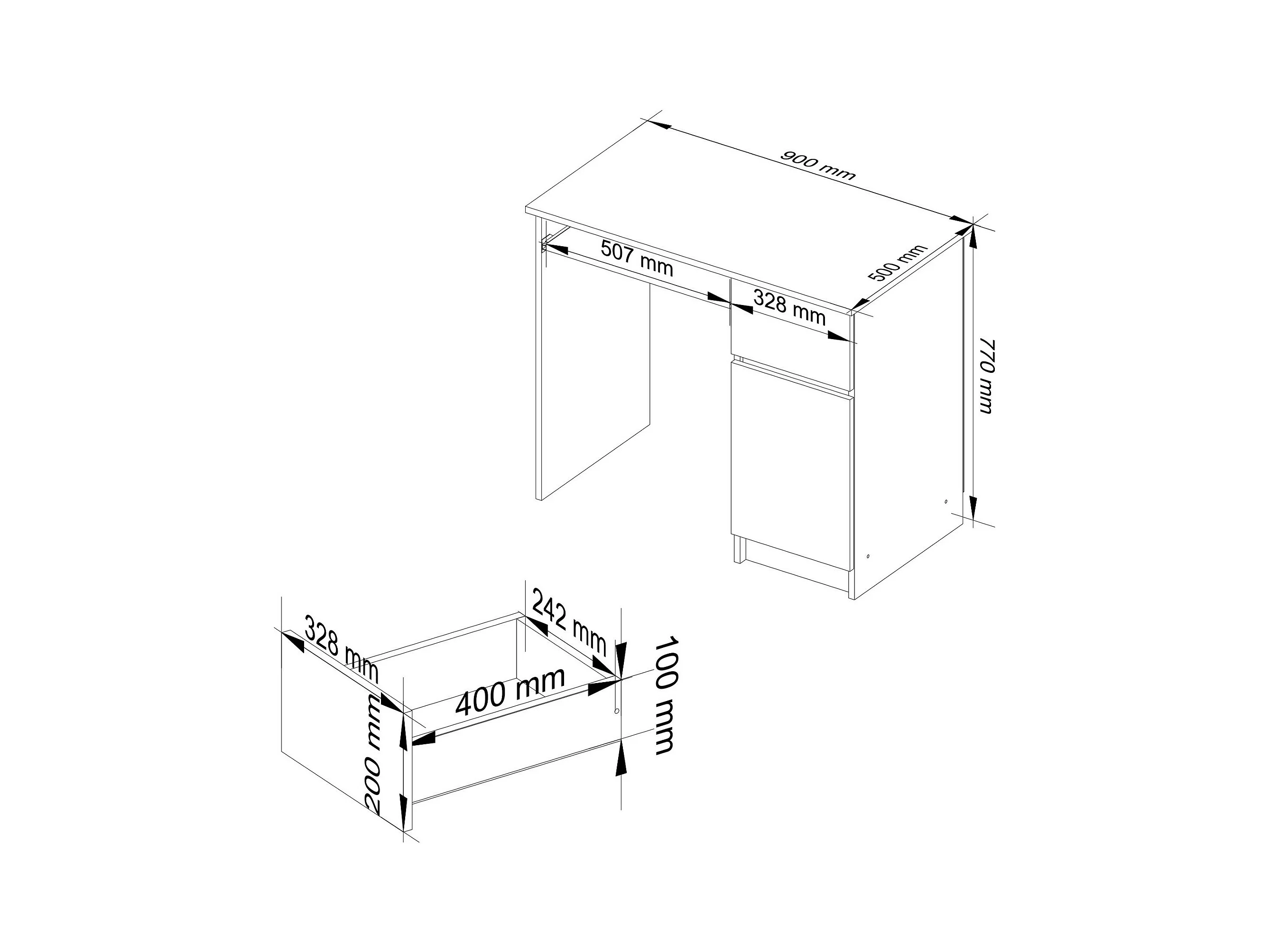 Klassiek Bureau JAY Wit/Grijs met Lade & Klavierlade - 90x74x50 cm - Laminaten Afwerking, Zelfmontage