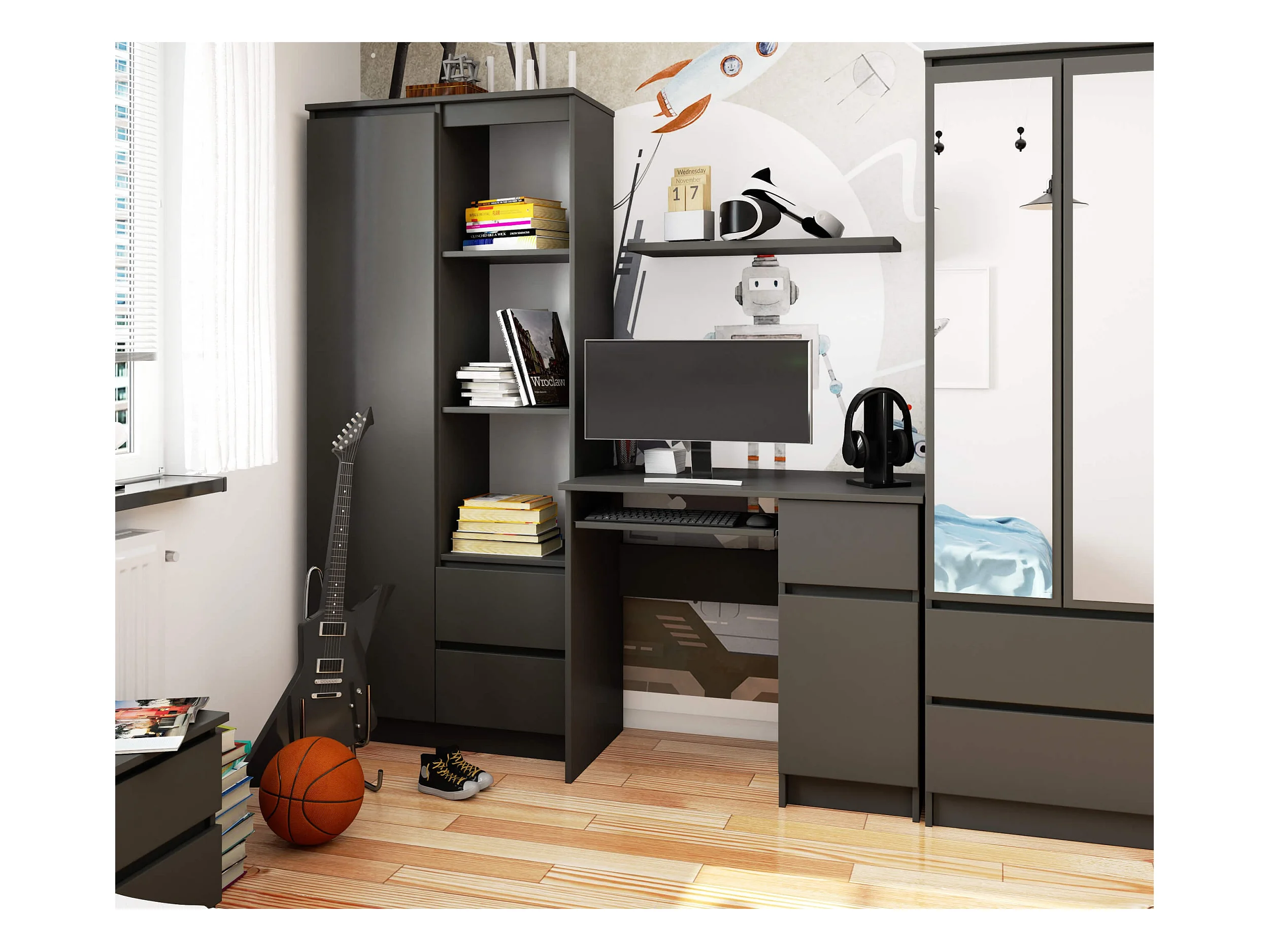 Rechtshandig Bureau A-7 in Grafiet Grijs met 4 Lades en ABS-randen