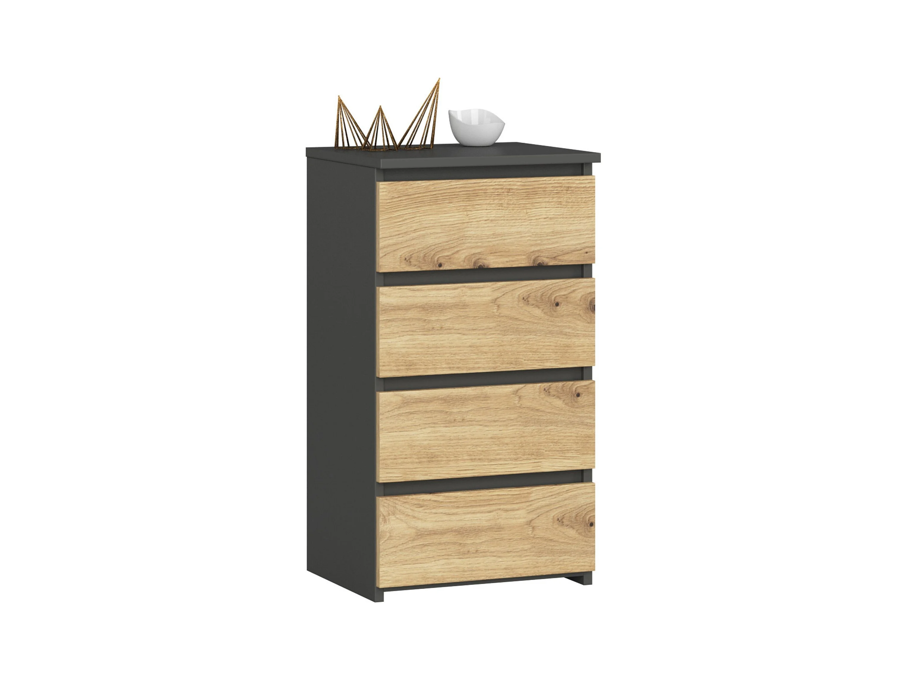 Grafietgrijze en Eik Artisan Commode met 4 Lades - Stijlvolle Opberger voor Thuis