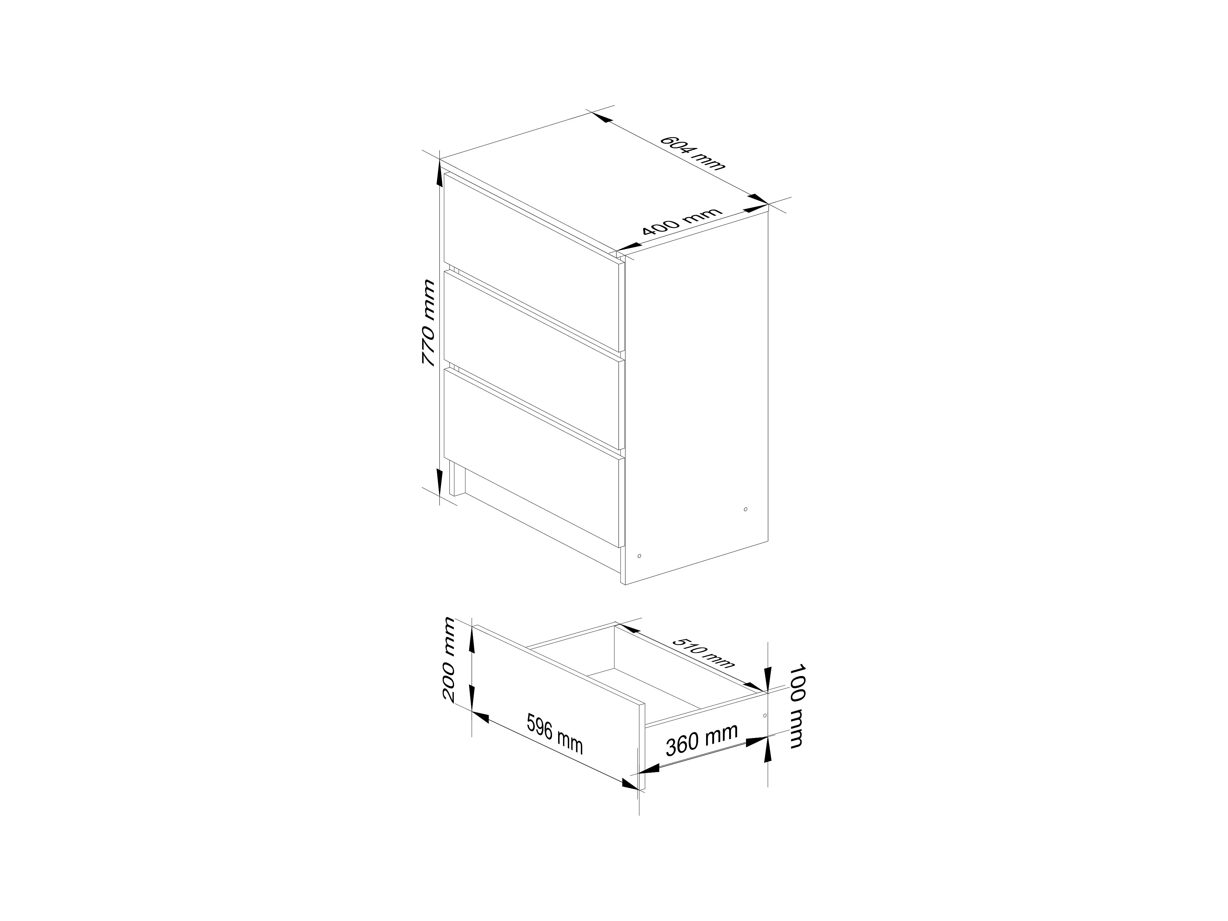 Grafietgrijze Staande Kommode K60 met 3 Laden - 60x77x40 cm