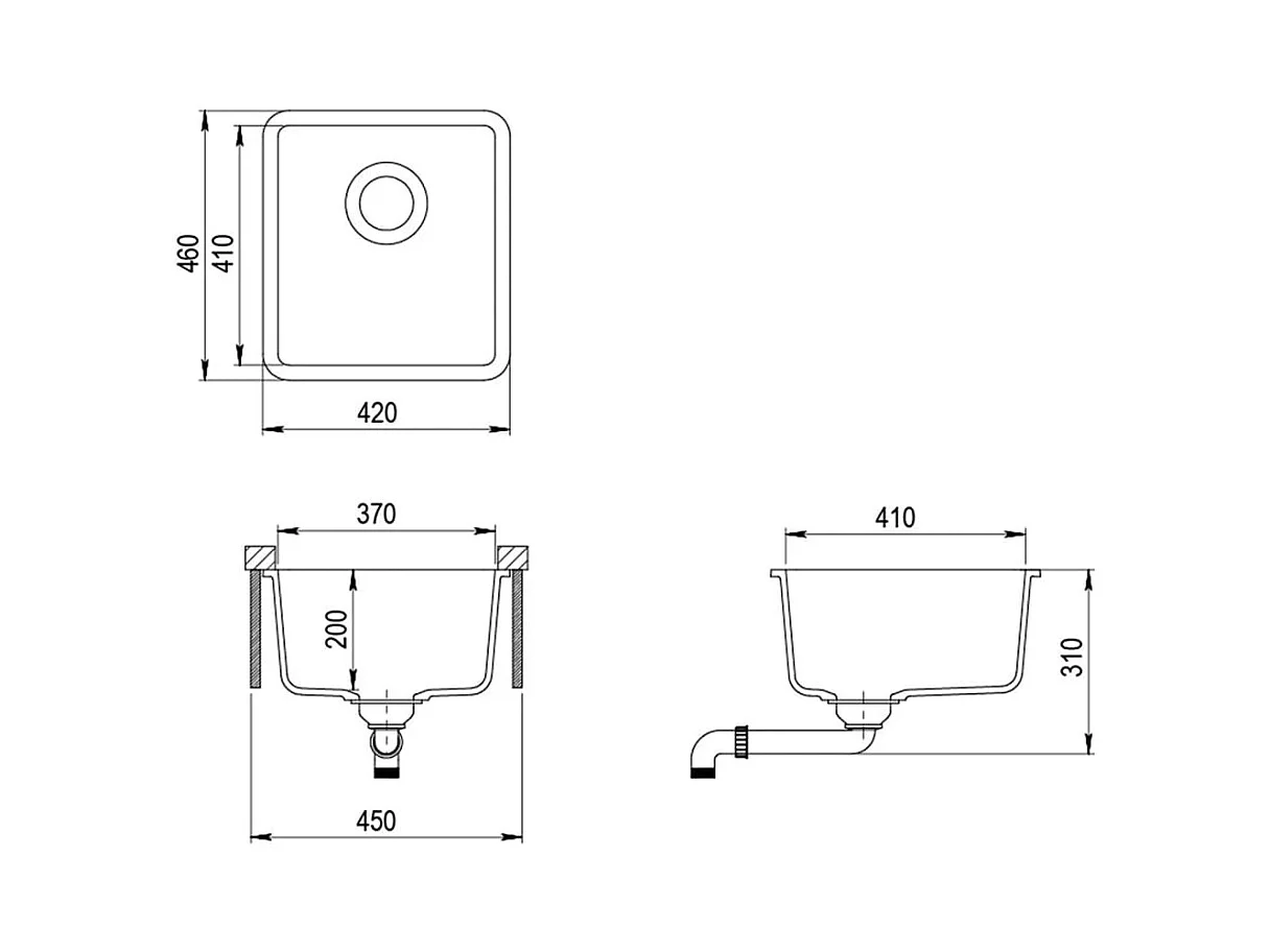 Granieten keukenspoelbak met enkele kom, grijs
