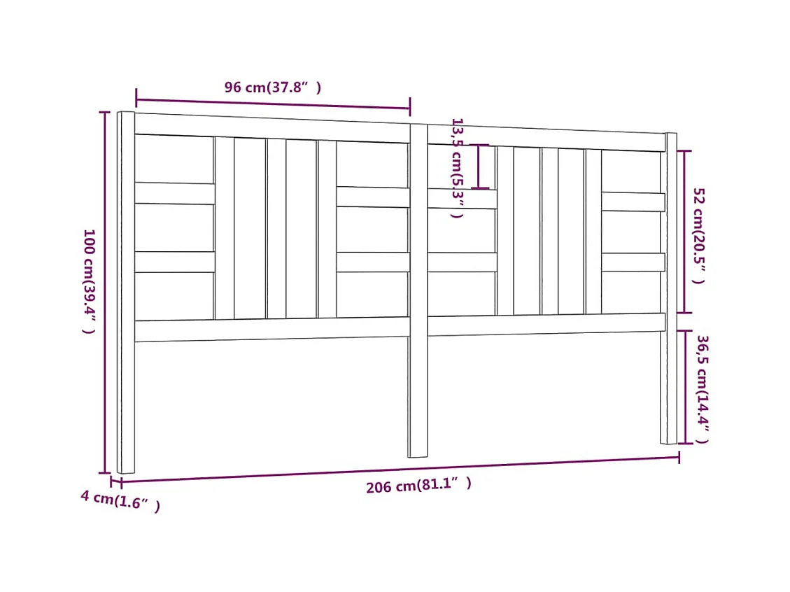 Grijs hoofdbord 206x4x100 cm Massief grenenhout