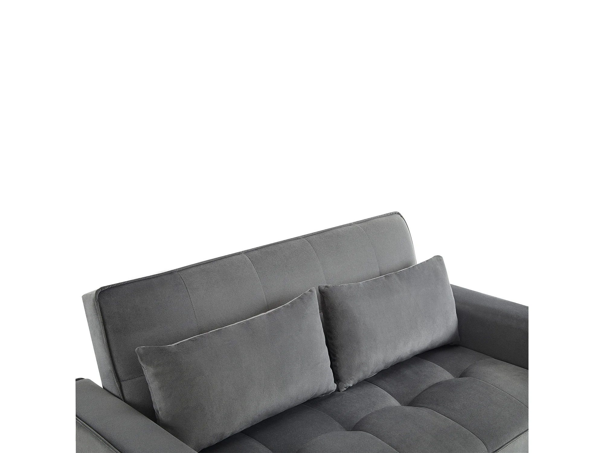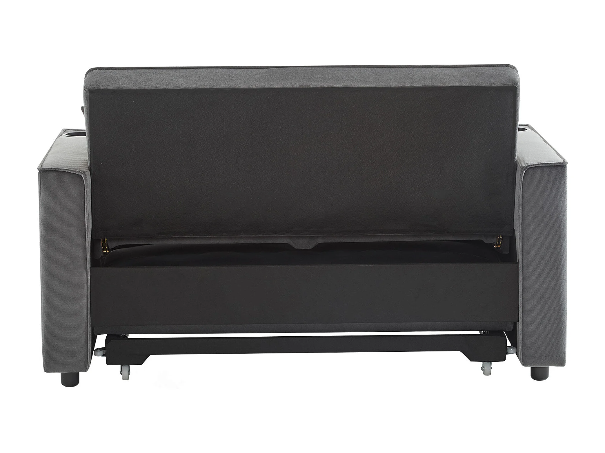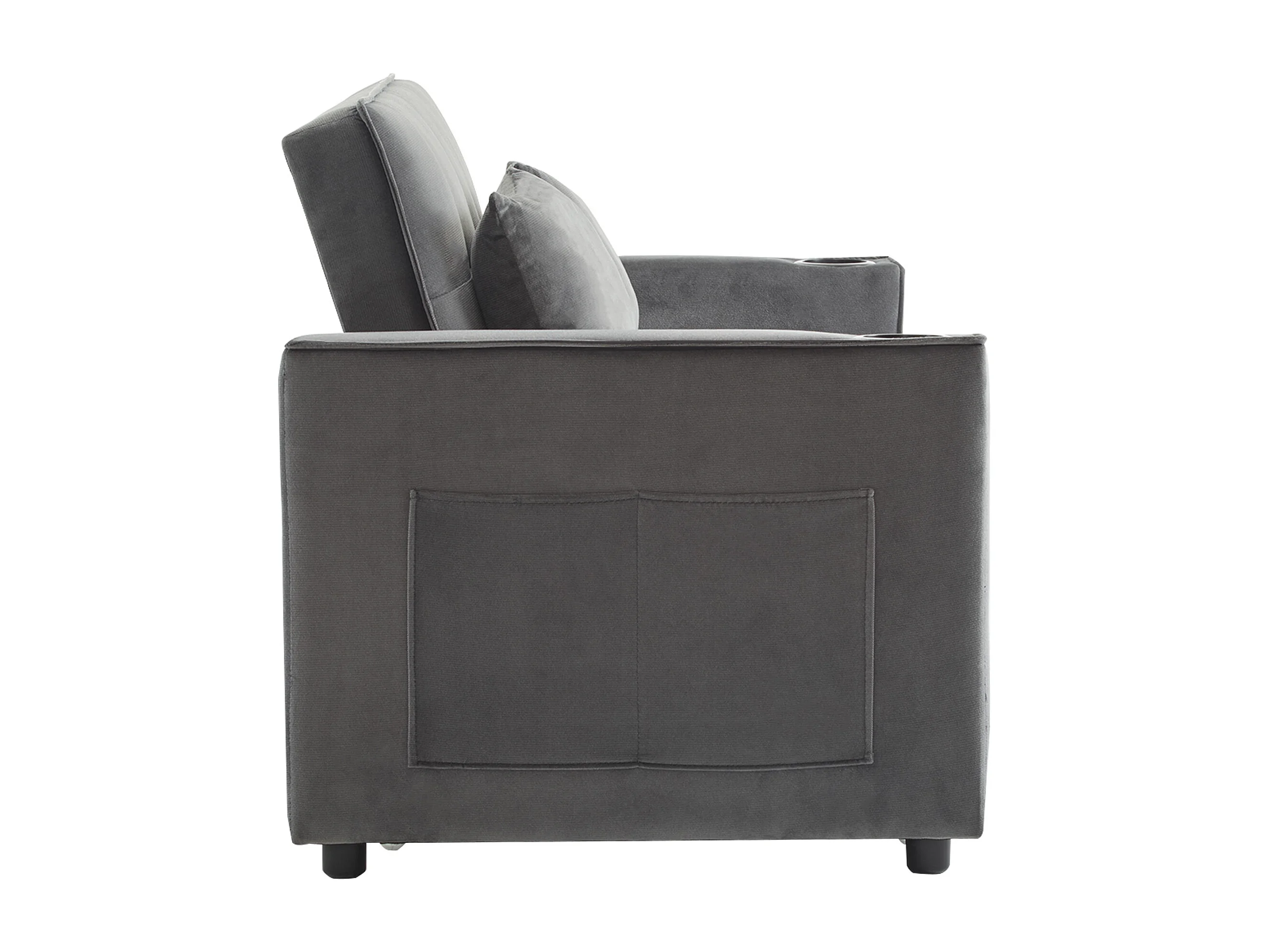 Grijze 2-zitsbank - Fauteuil met bekerhouder en opbergvak - kussens en wieltjes
