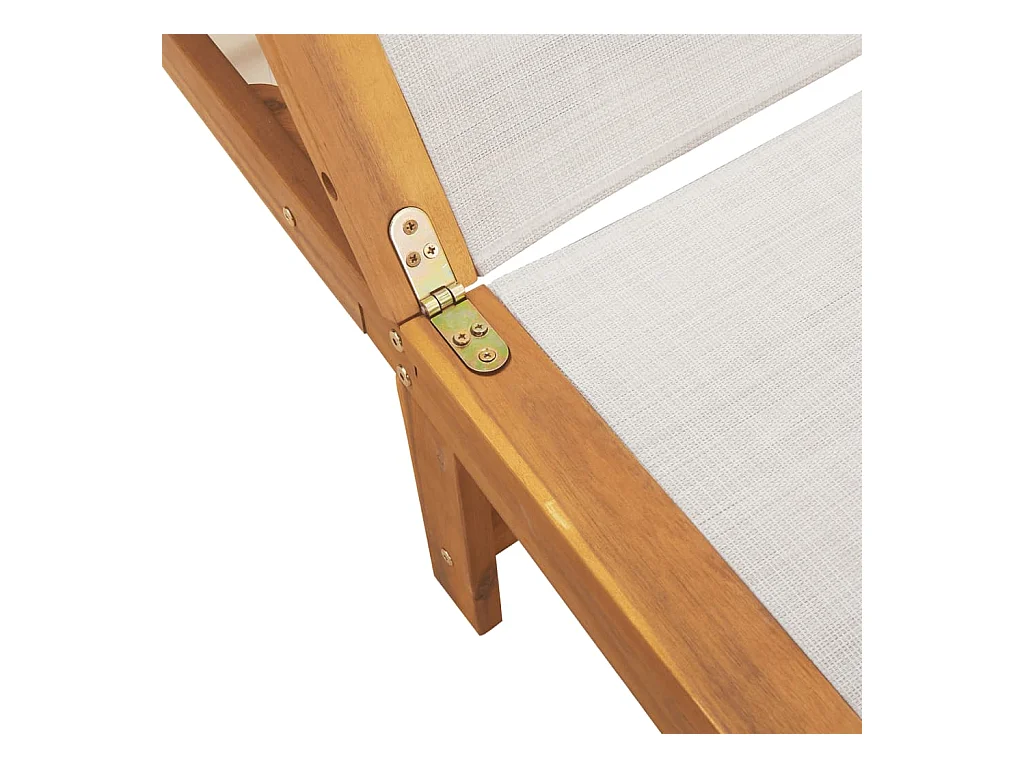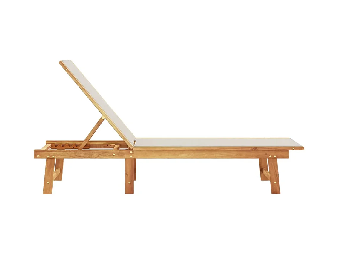 Crèmekleurige chaise longue van massief acaciahout en textileen